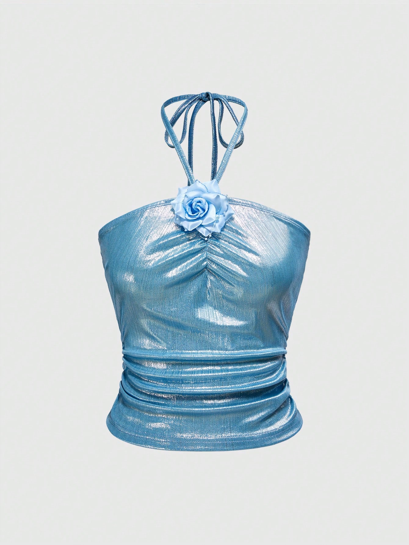 ROMWE Avant Women's Elegant 3D Floral Decor Sleeveless Top, Summer