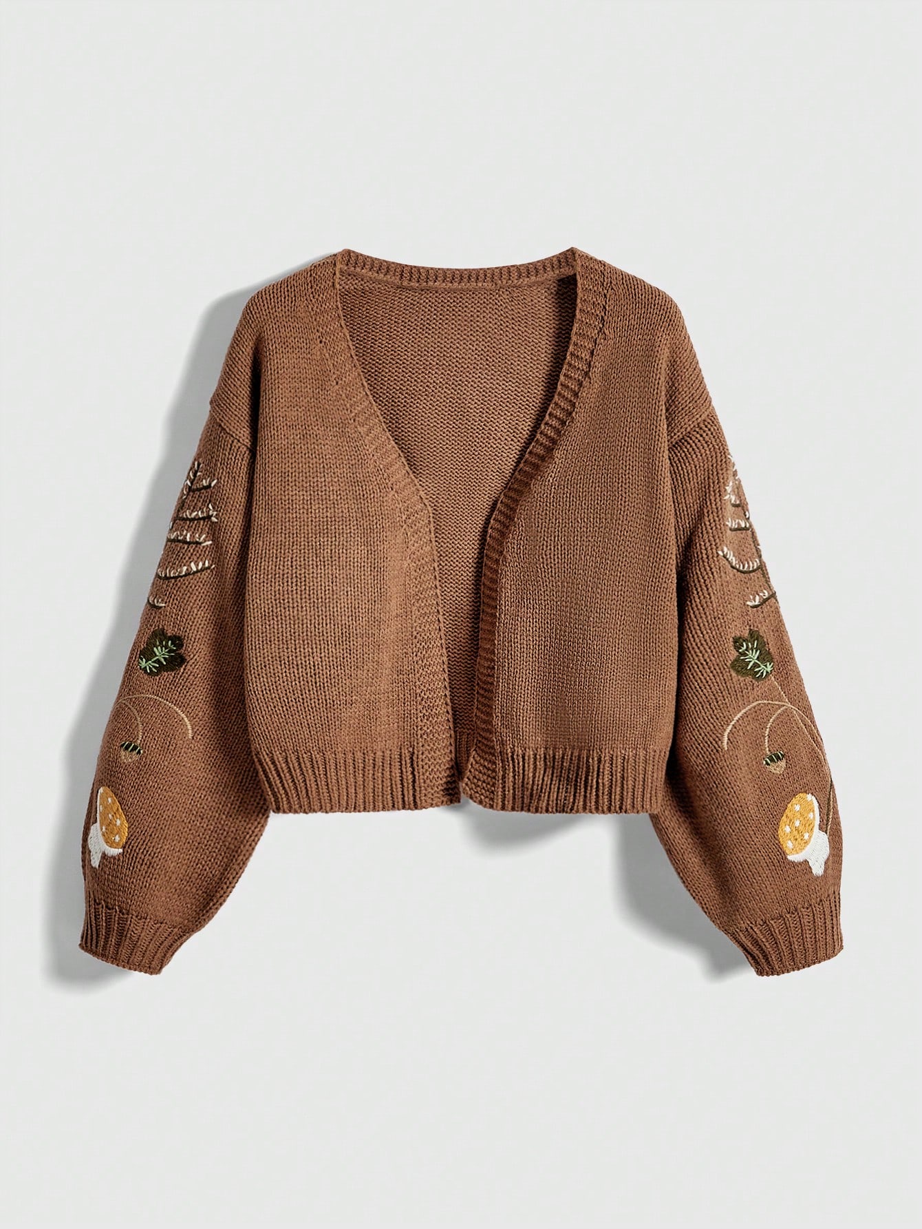 Women's Fairycore Mushroom Vine Embroidered Knit Cardigan