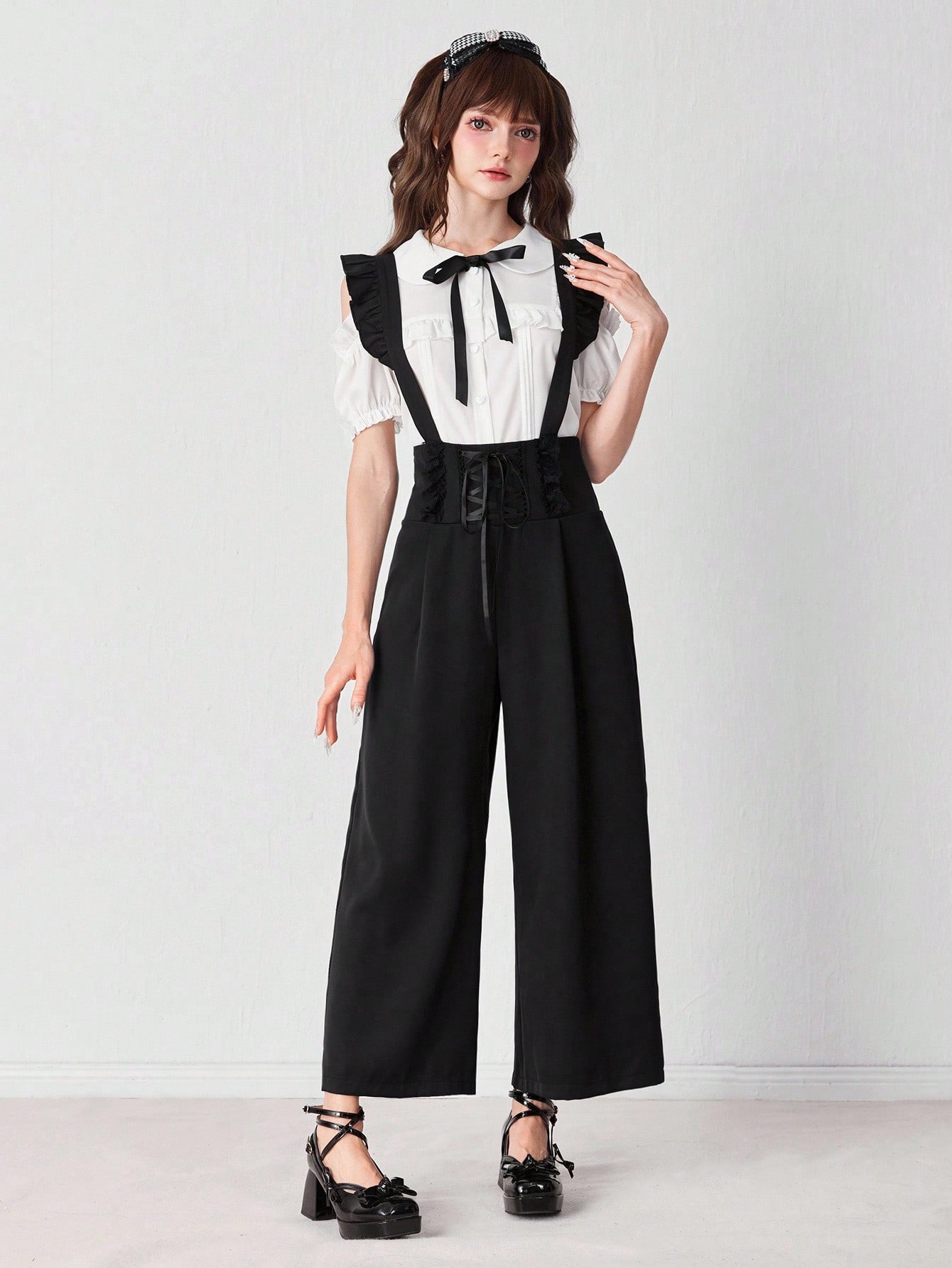 EDITION Women's Fashionable Versatile Solid Color Criss-Cross Tie Pants