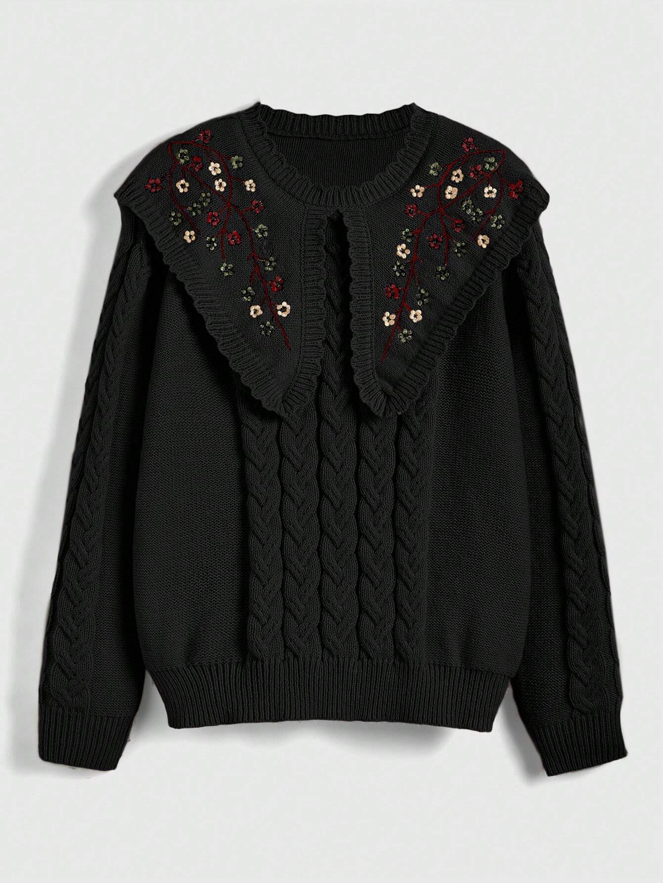 Fairycore Women's Retro Cottagecore Style Embroidered Collar Sweater