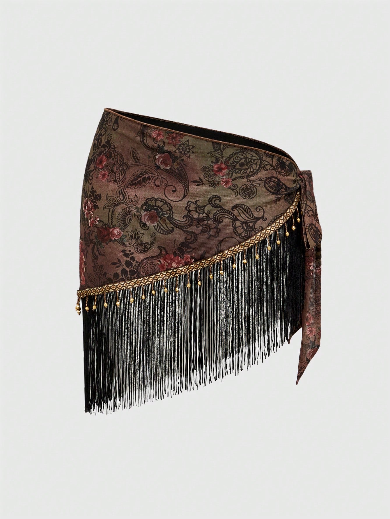 Hippie Women's Retro Hippie Sexy Festival Tassel Ribbon Paisley Printed Boho Skirt