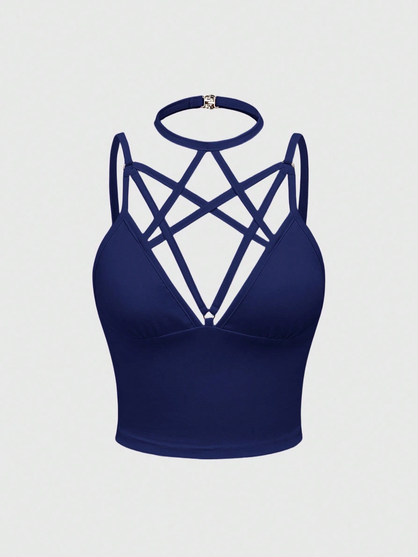 Goth Women's Summer Solid Color Sexy Criss-Cross Strap Fitted Camisole