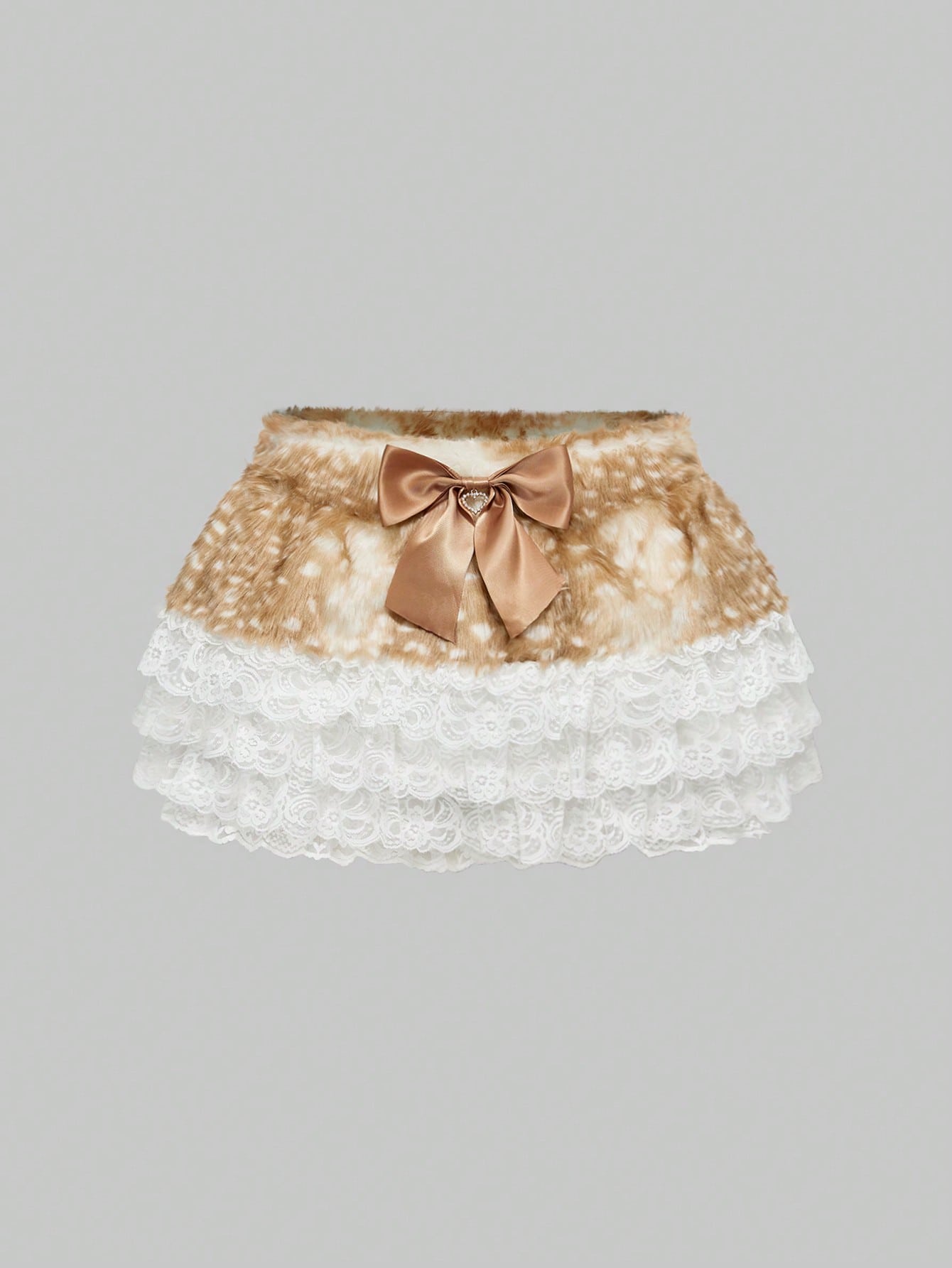 ROMWE Avant Women's Vintage Forest Style Mori Kei Cottagecore Retro Deer Pattern Fluffy Peter Pan Collar Lace Patchwork Ribbon Bow Decor A-Line Skirt