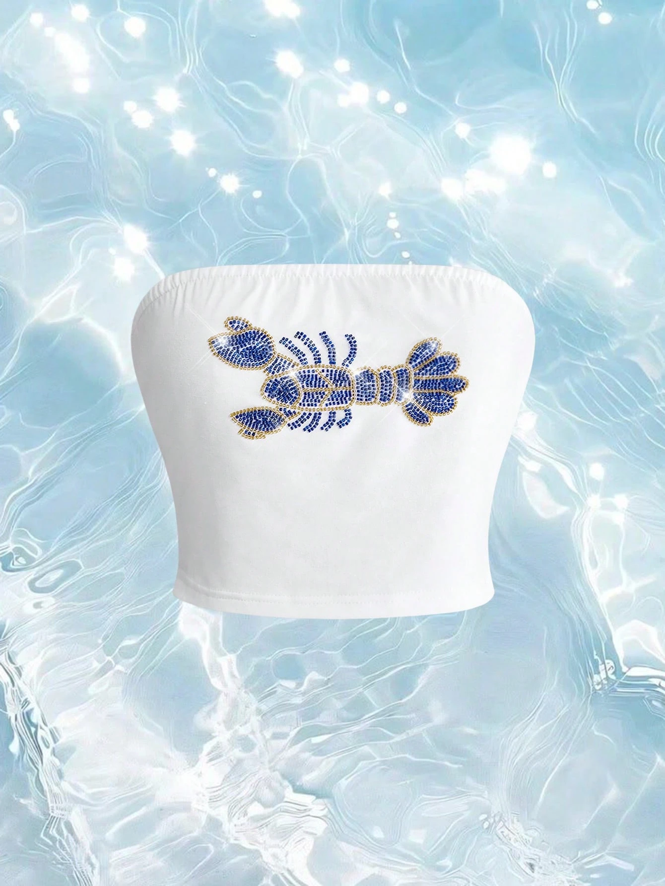 Women's Y2K Island Babe Sequin Embroidered Cropped Tube Top