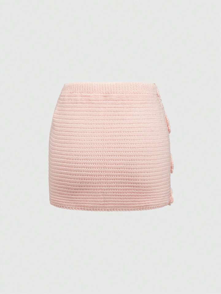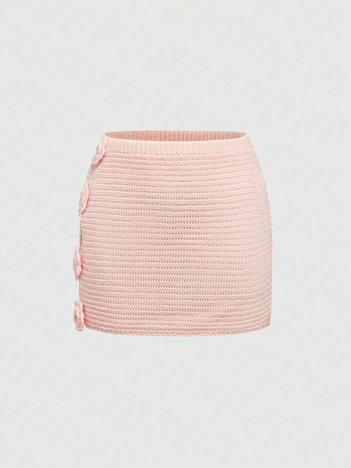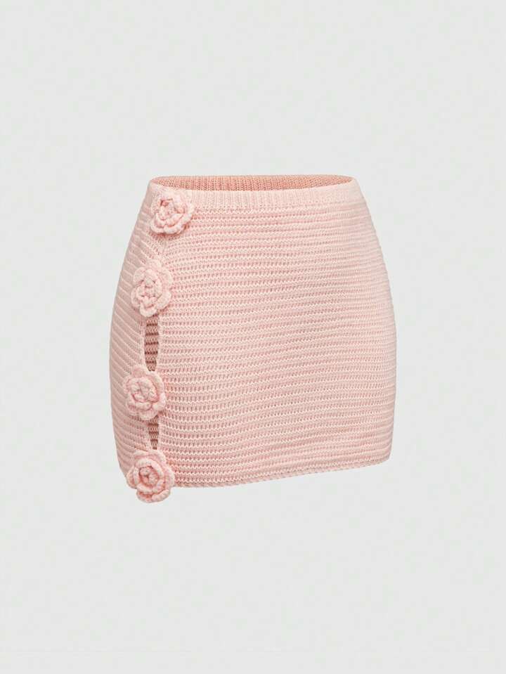Women 3D Floral Knitted Mini Skirt, Casual Vacation