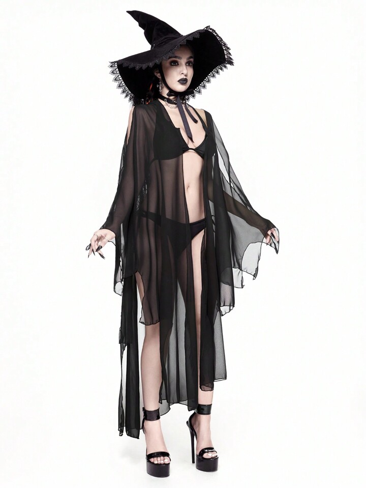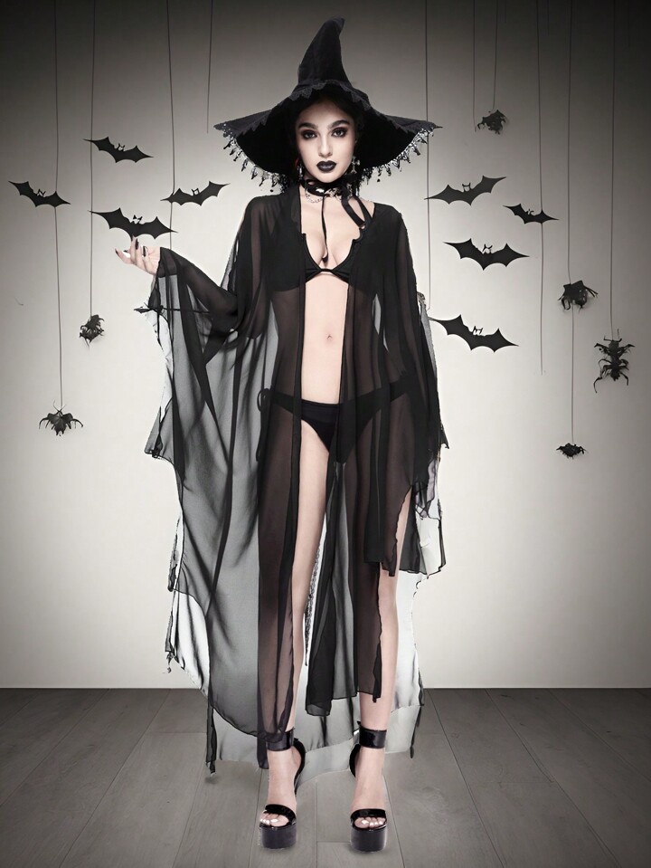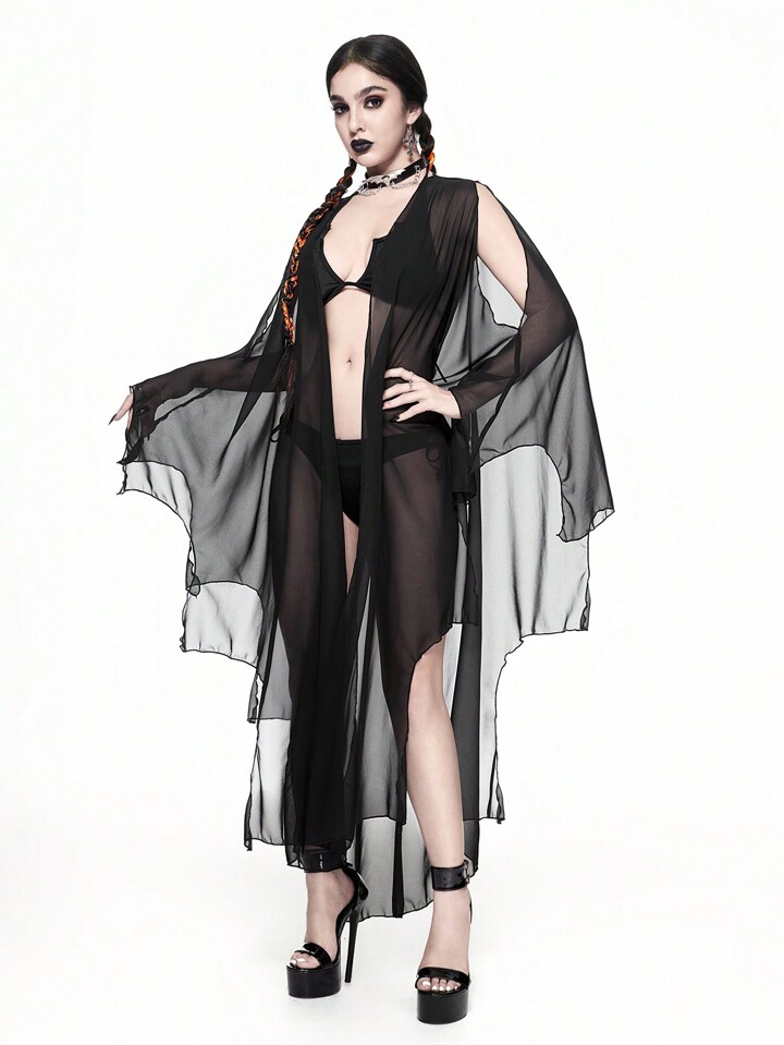 Women Goth Beach Kimono Of Bat Cloak Design, Halloween Clothes, For Summer Vacation