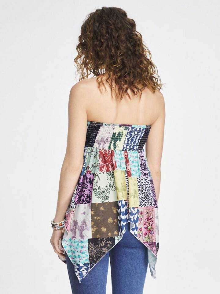 Women Hippie Patterned Asymmetrical Hem Beachwear Strapless Top