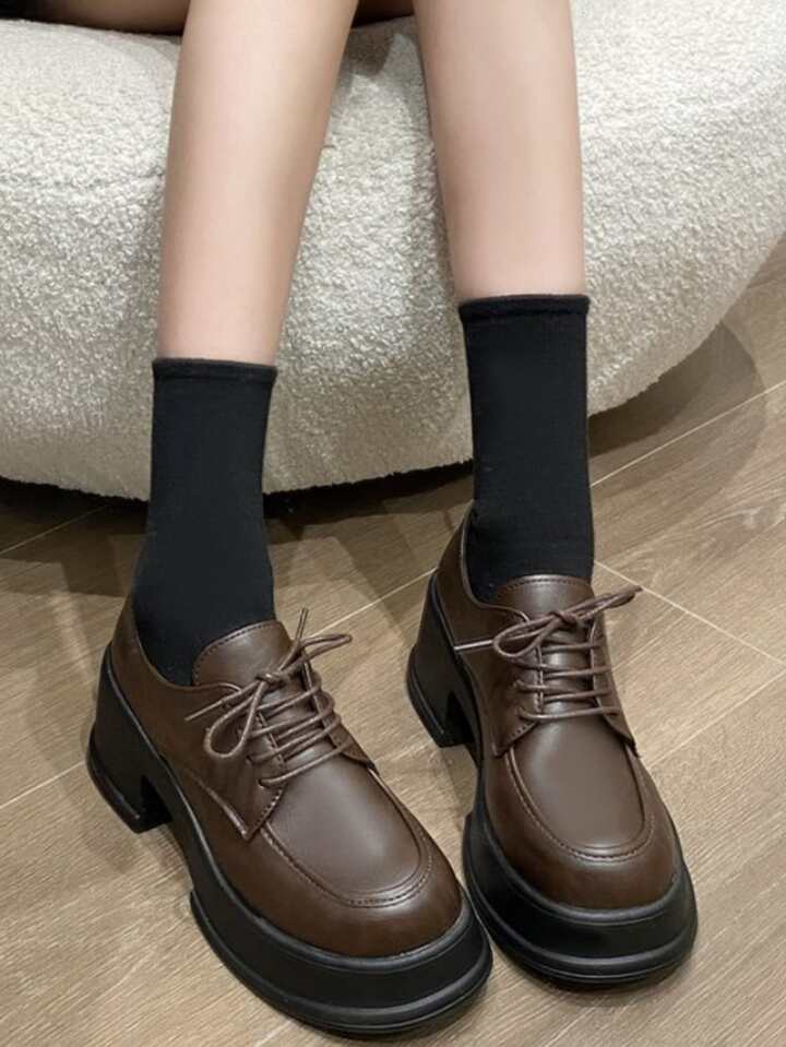 Women Lace Up Platform Oxford Shoes, Preppy Outdoor Brown Wedge Shoes
