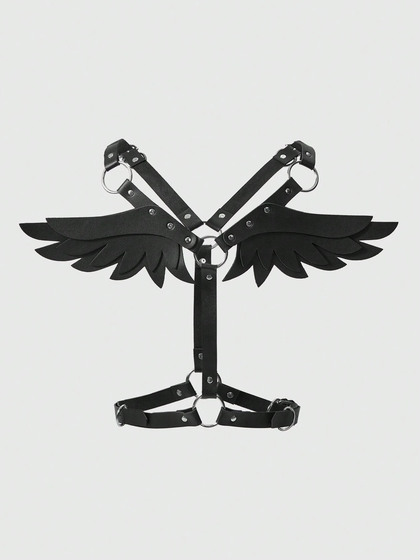 Women Sexy PU Leather Wings Harness Sexy Lingerie Outfit Garter Belt Gothic Costume Black Adjustable