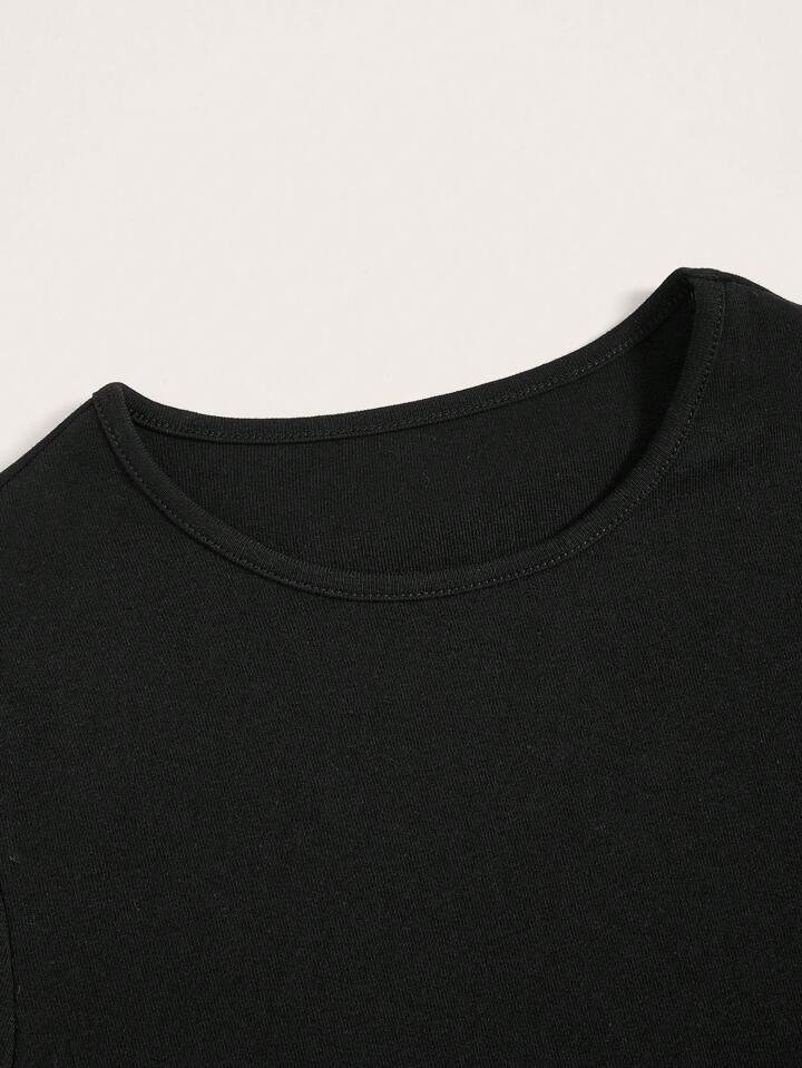 Women Solid Color Round Neck Long Sleeve Crop Fit Casual T-Shirt
