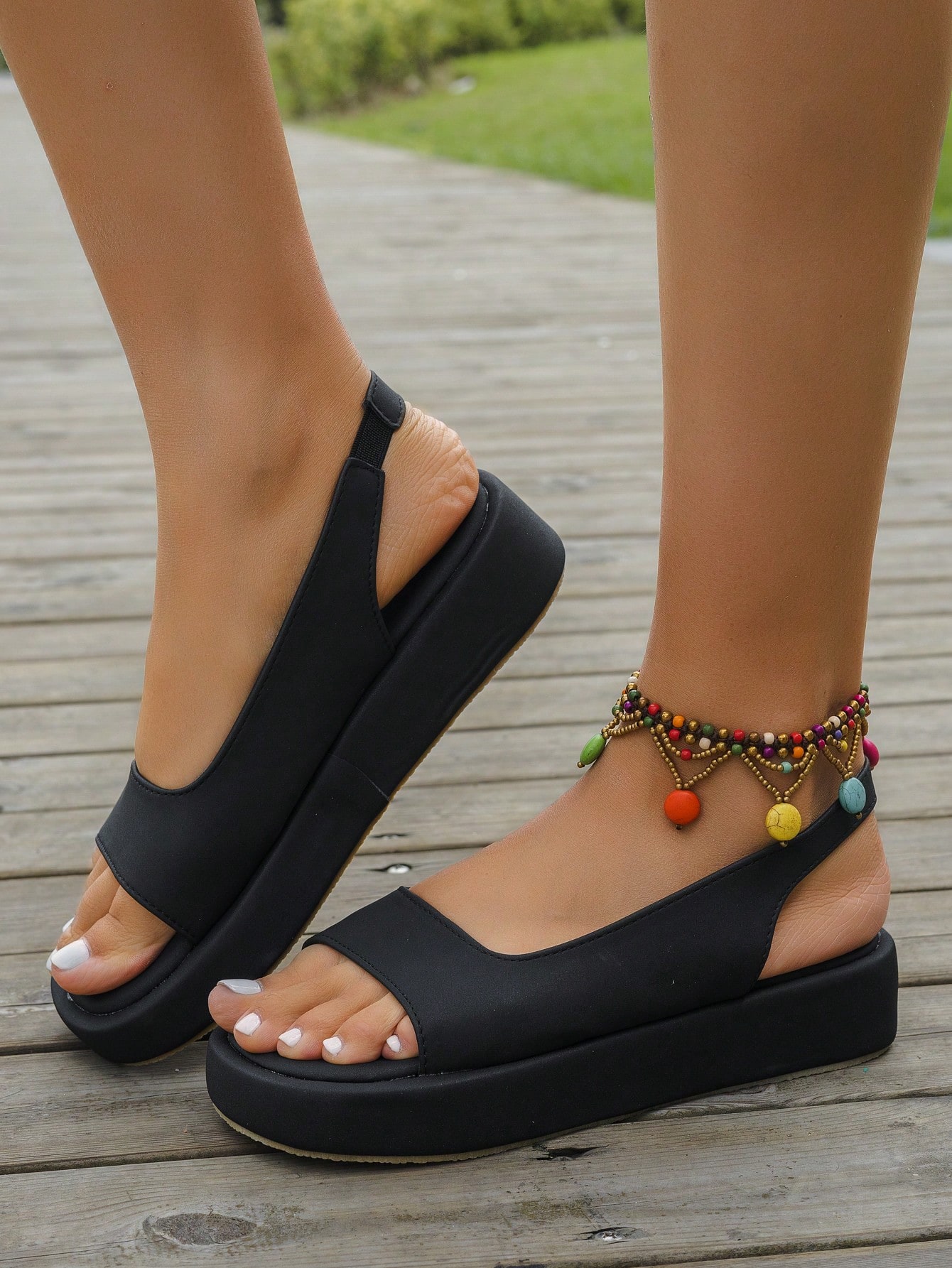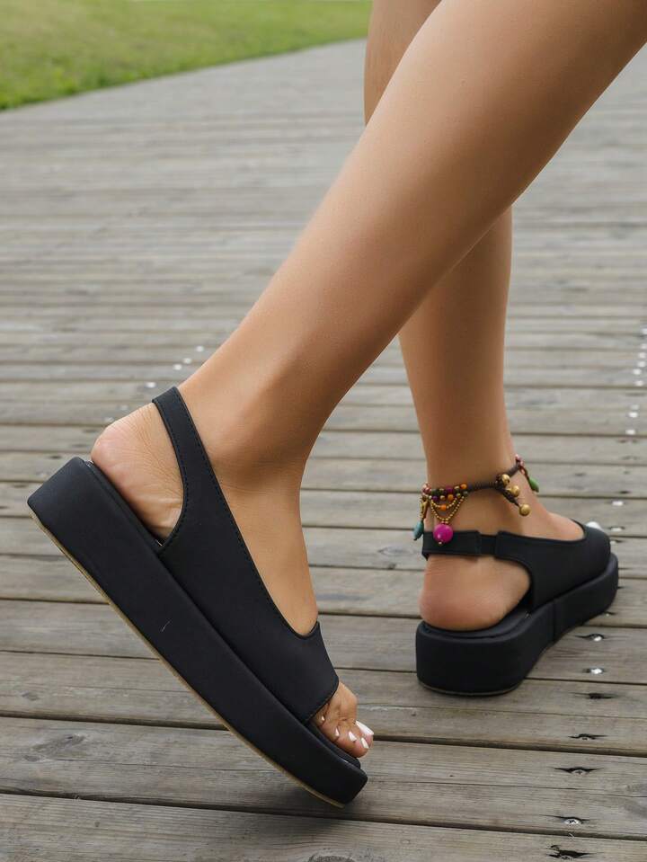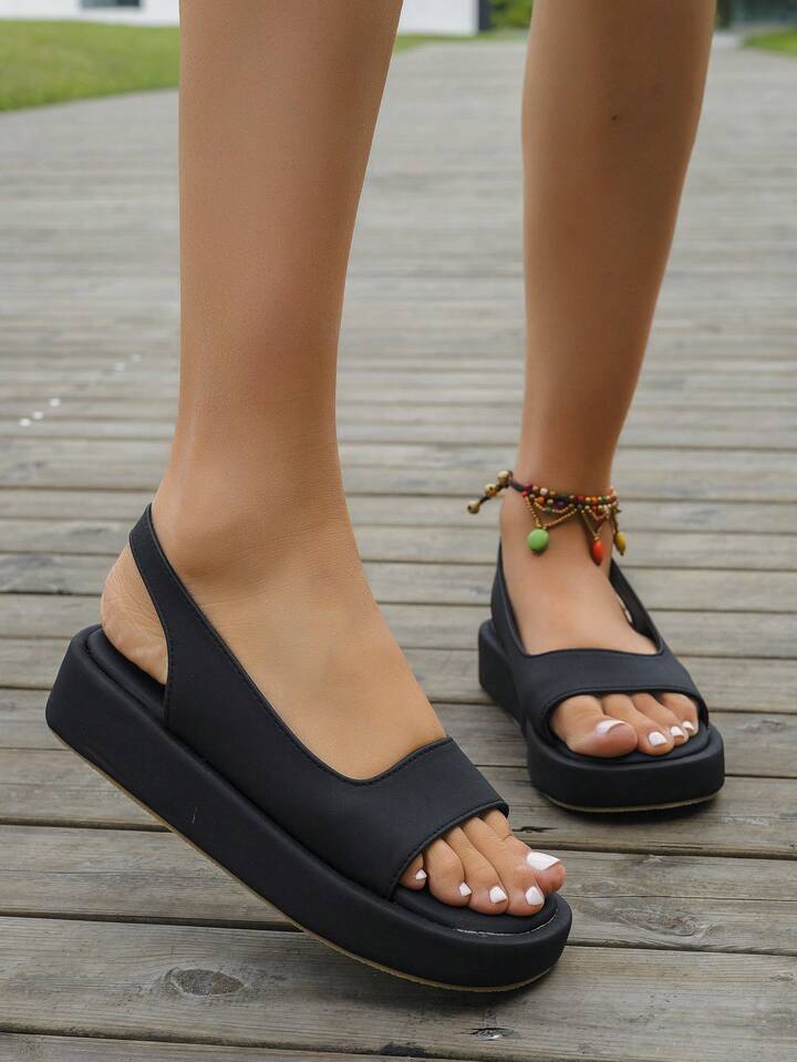 Women Solid Slingback Flatform Sandals, Fashion Outdoor Sandals