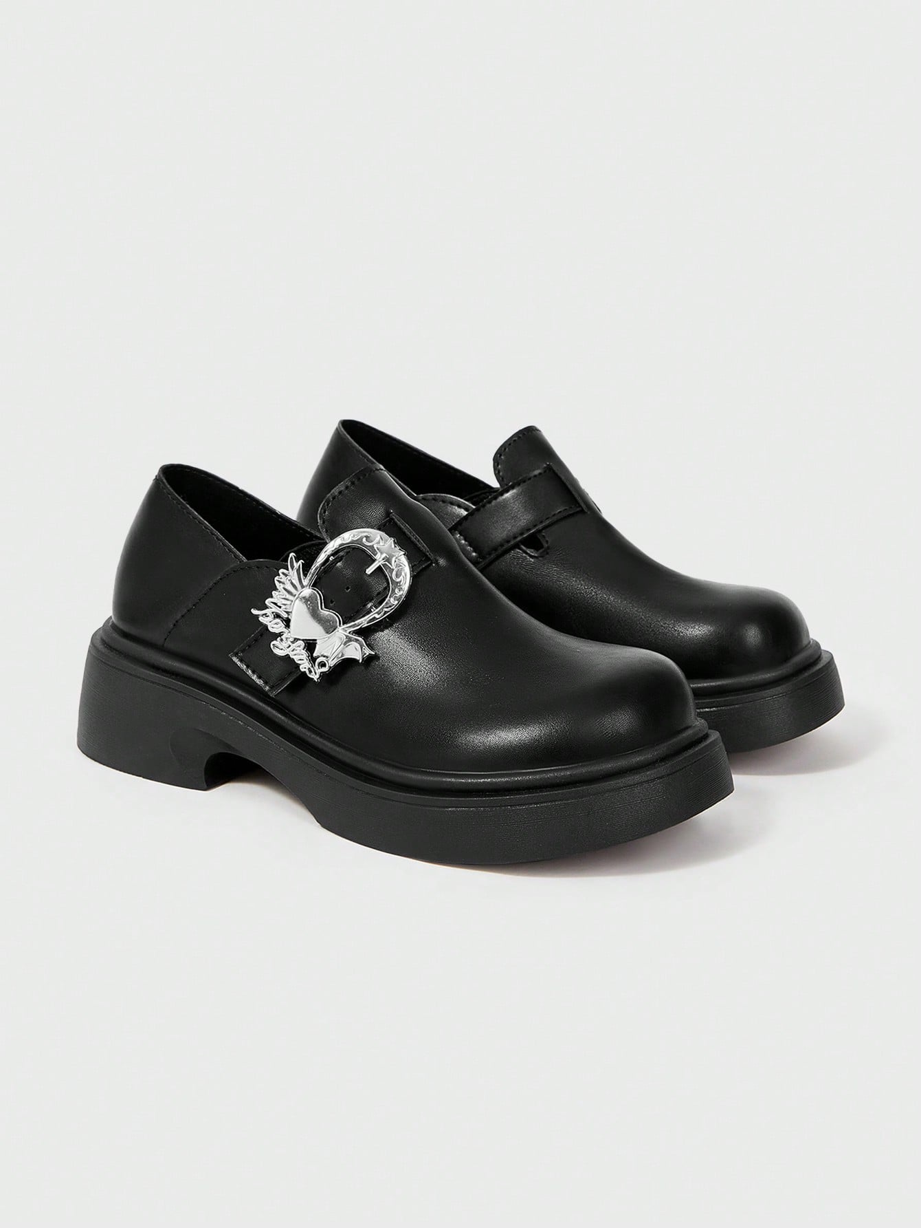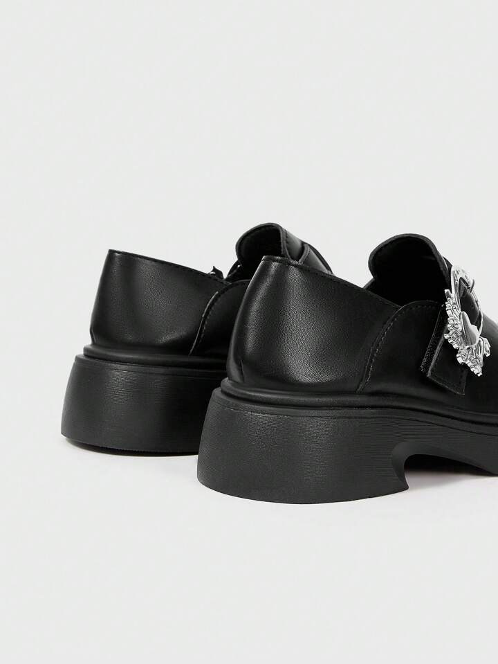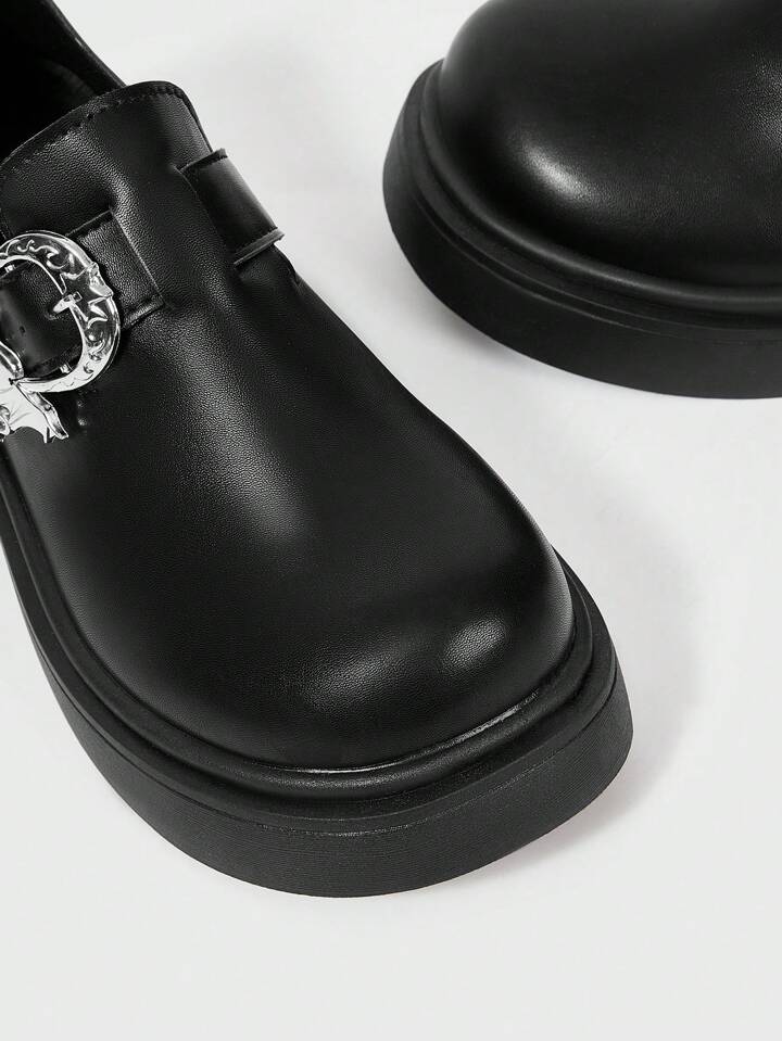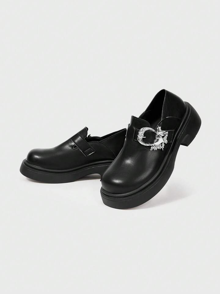 Women's Black Mary Jane Shoes, Strap Buckle Loafers With Metal Buckle, Punk/Goth Style Lug Sole Platform Shoes