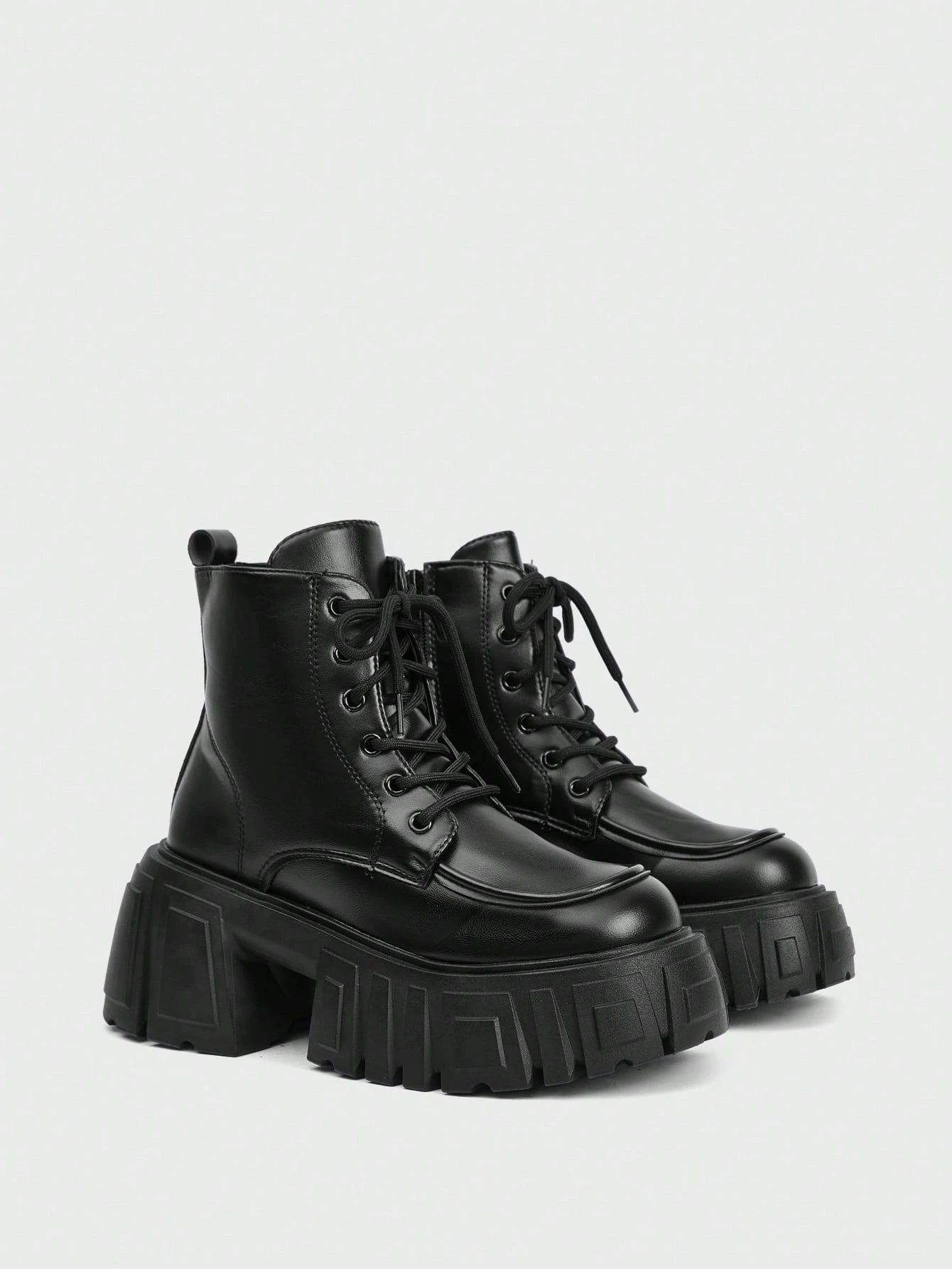 Women's Dark Punk Goth Lace-Up Platform Thick Sole Motorcycle Boots, Ankle Boots And Short Boots With Inner Height Increase