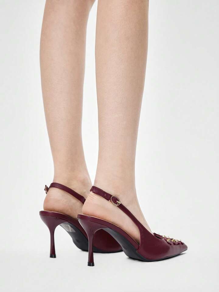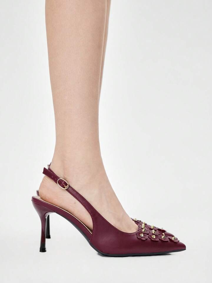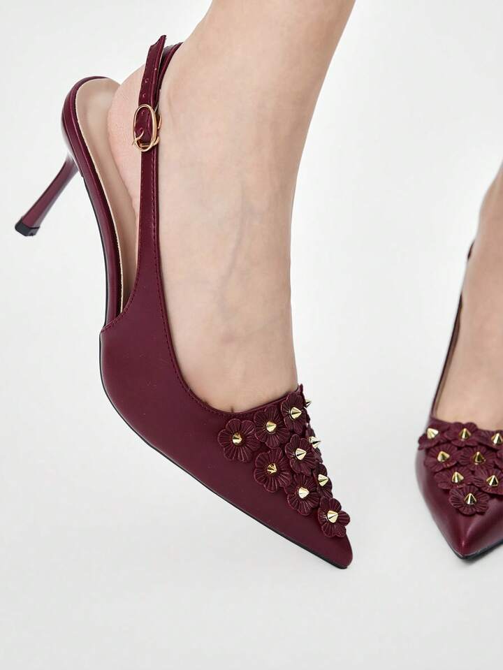 Women's Elegant Commuter Pumps With Stud And 3D Floral Decor, Pointed Toe