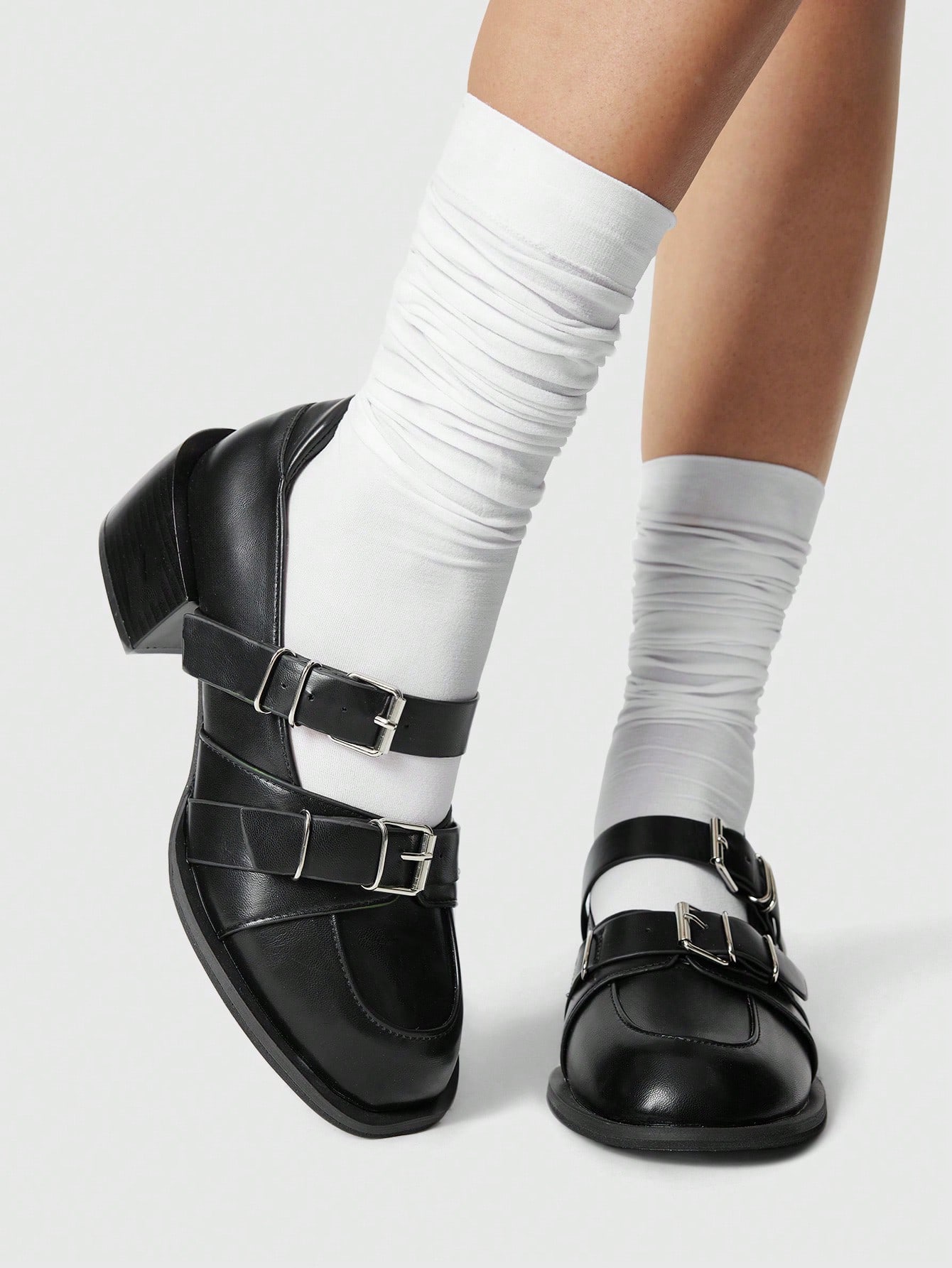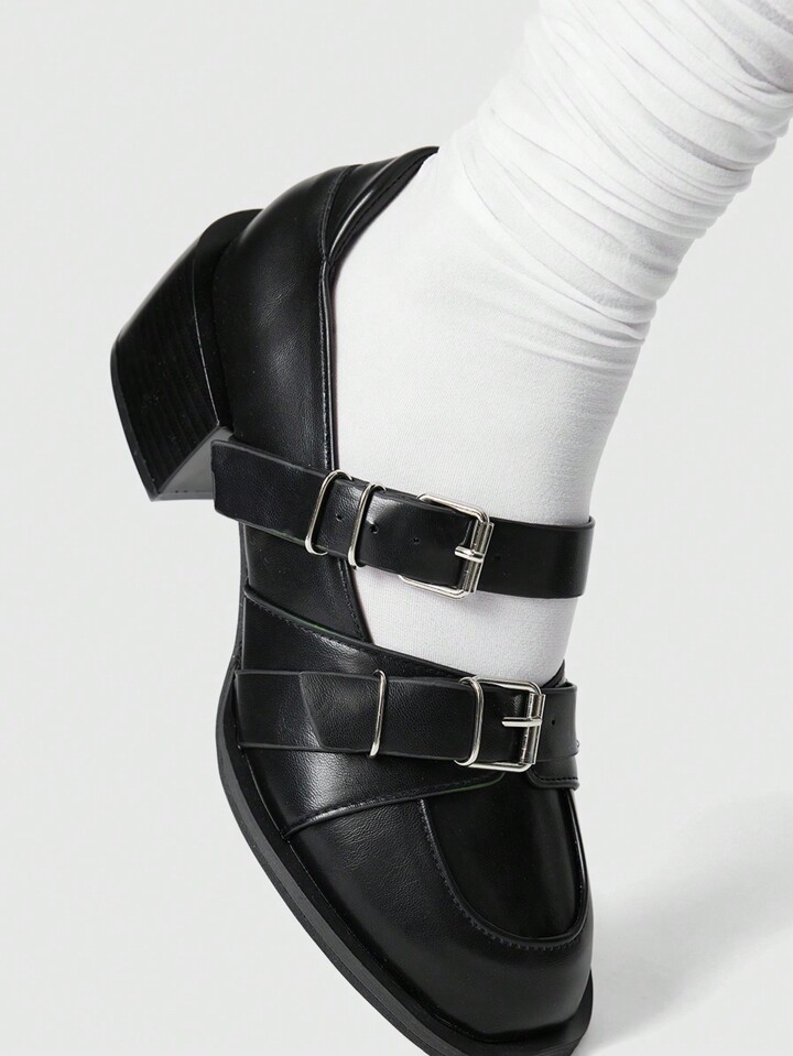 Women's Gothic Cross-Strap Mary Jane Shoes,Closed Toe Platform Chunky Heel Punk Rock Style Pumps