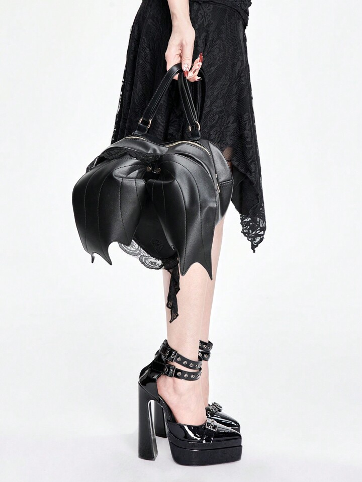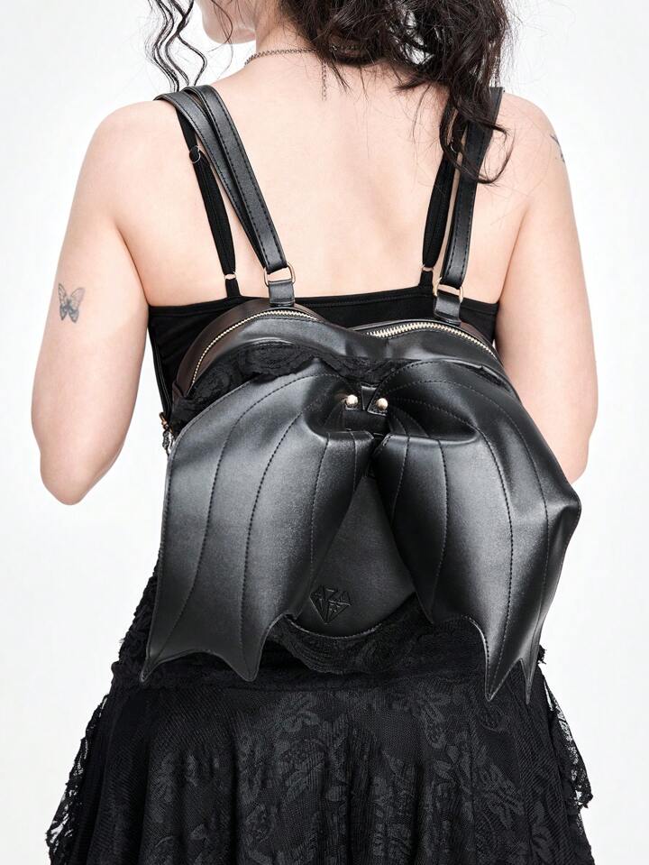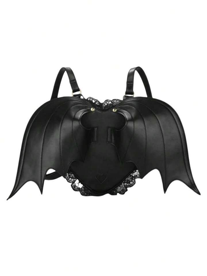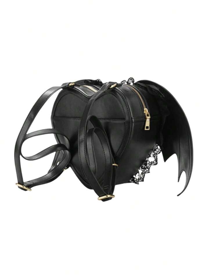 Women's Gothic Punk Backpack With Bat Wings, Heart Shape, Lace Trim, And Dark Style, School