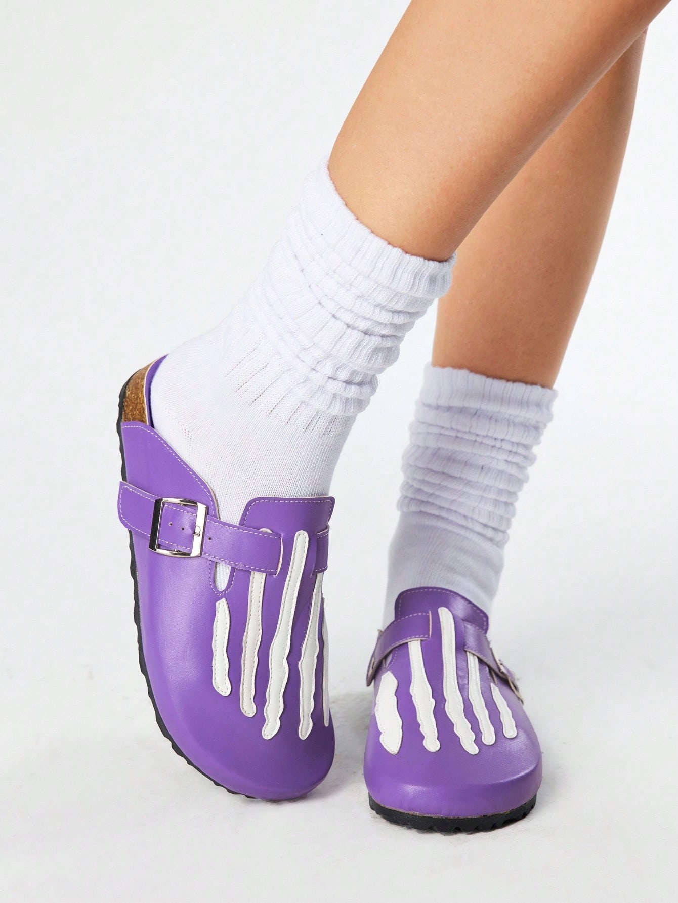Women's Gothic Punk Closed Toe Slip On Mule Loafers, Mary Jane Flats, Soft Outsole Slide Sandals, Halloween