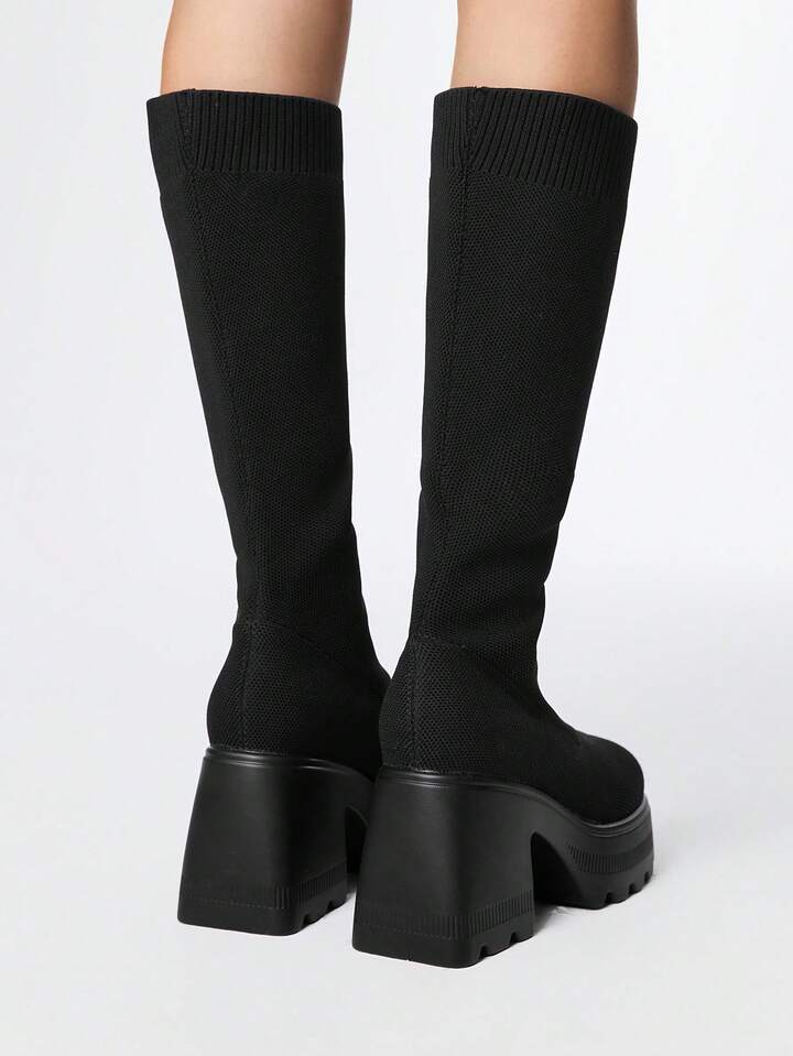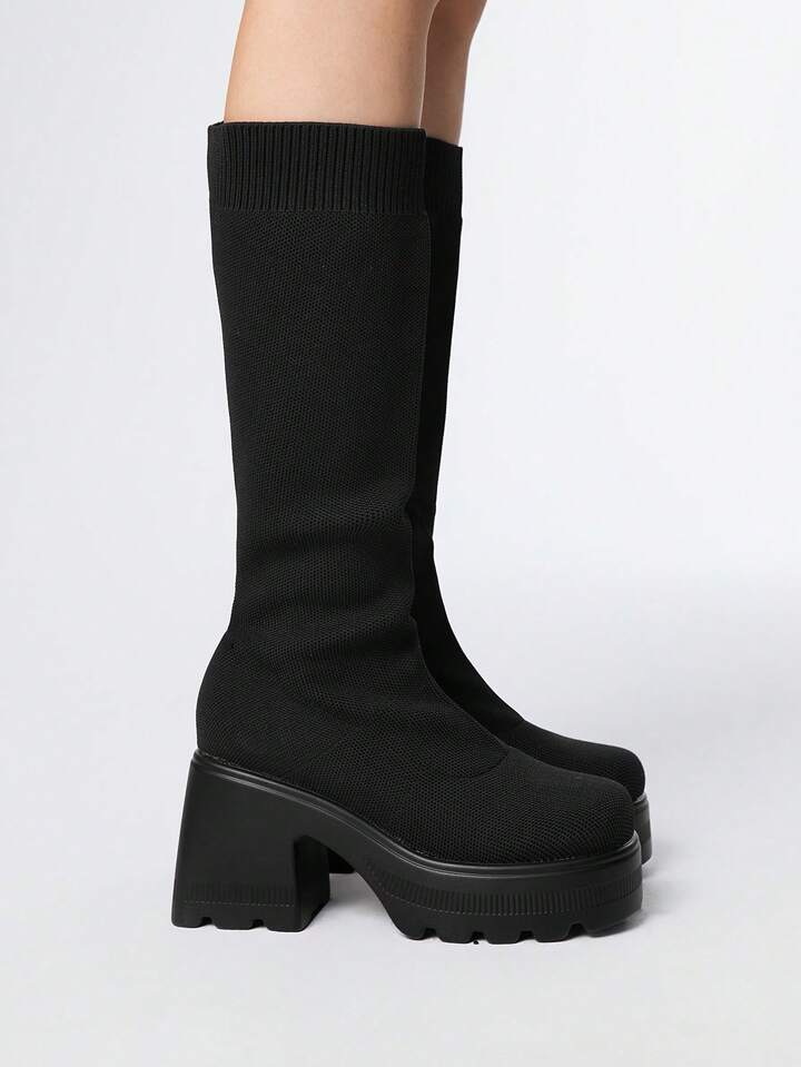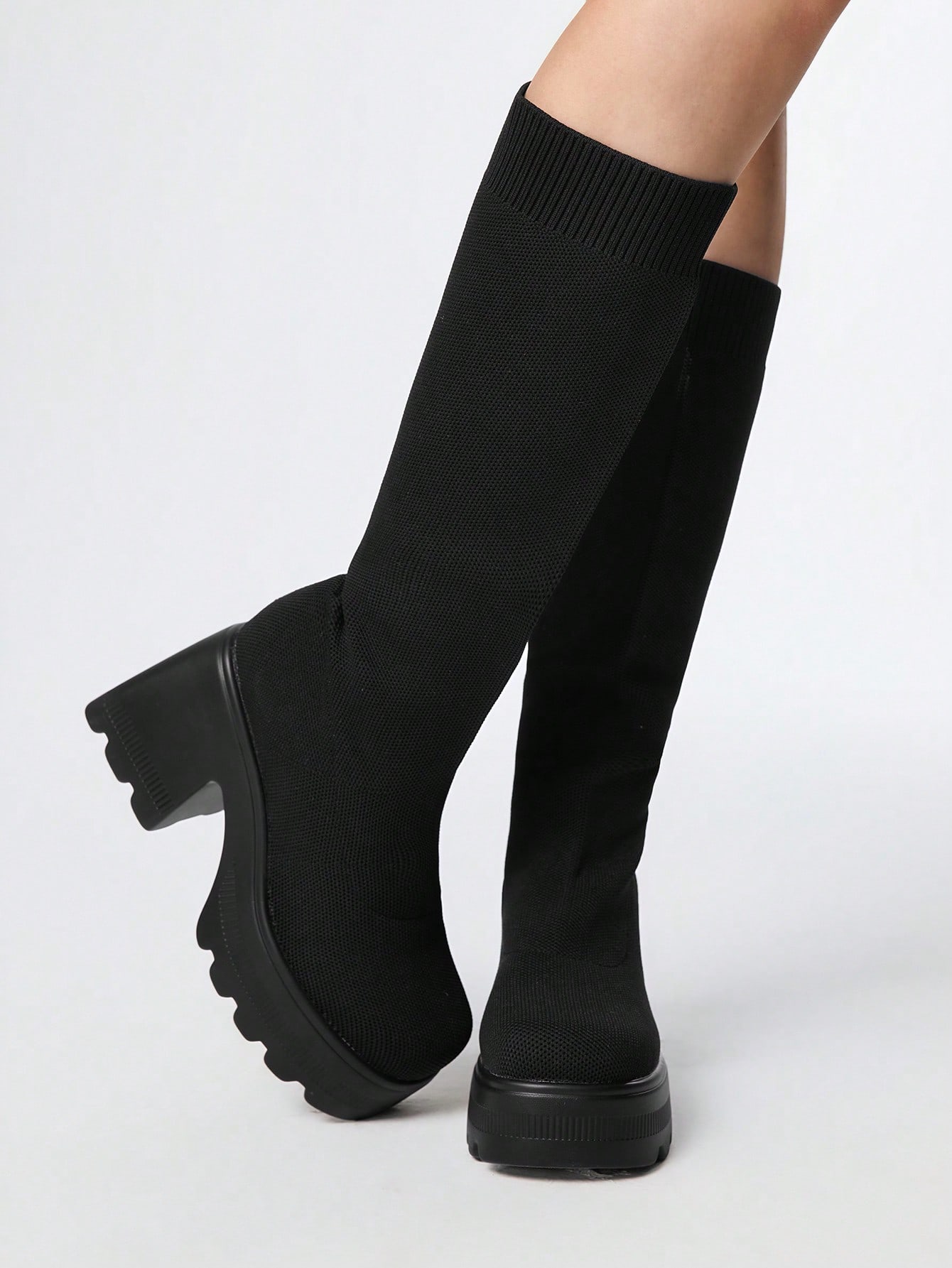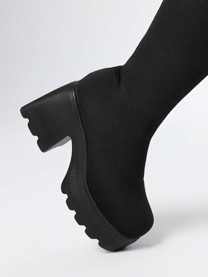 Women's Gothic Round Toe Thick Sole Chunky Heel Breathable Mesh Elastic Boots, Outdoor Fashion Slip-On Over-The-Knee Boots, Spring/Autumn New Arrival