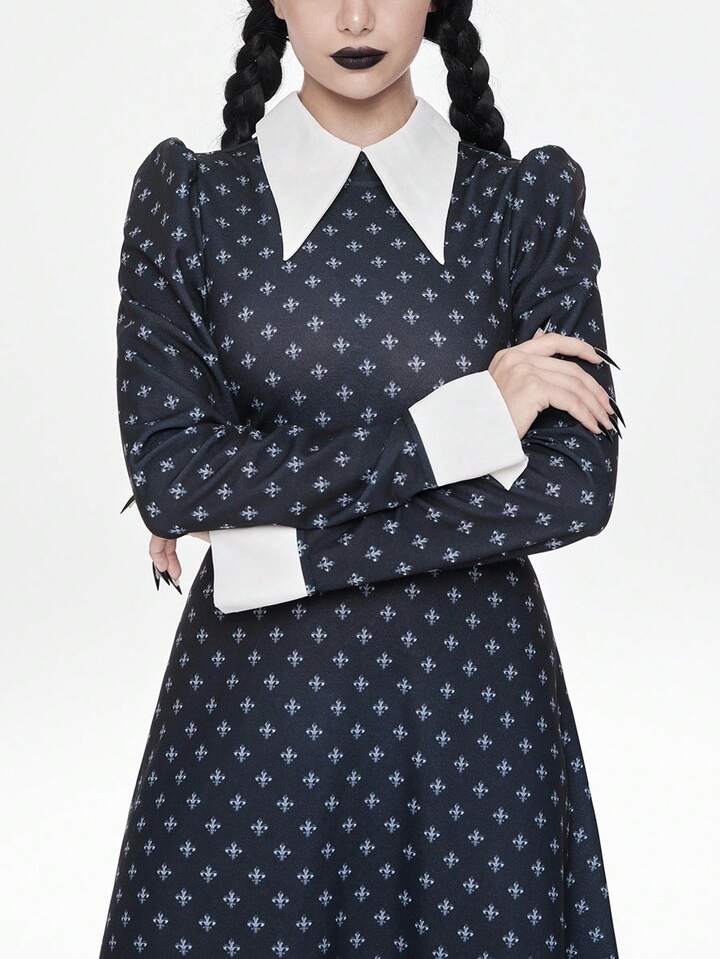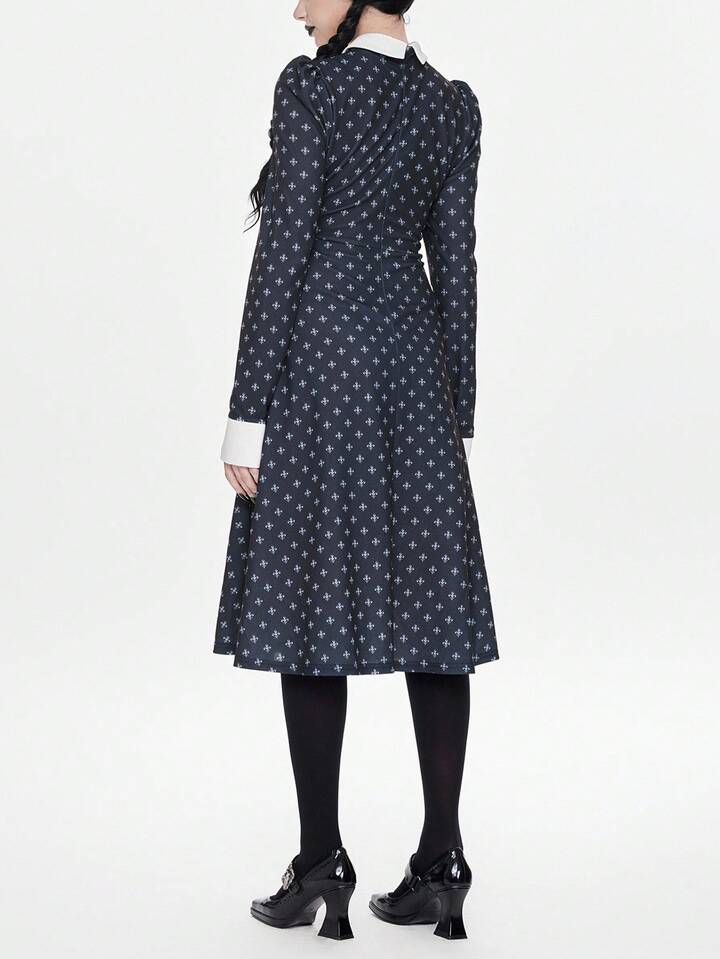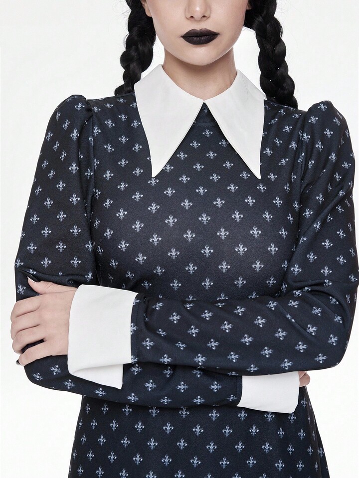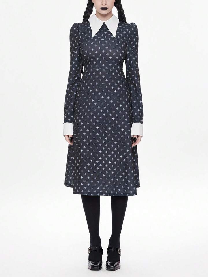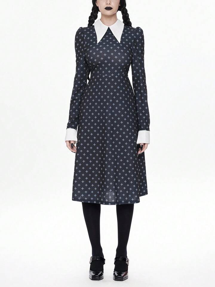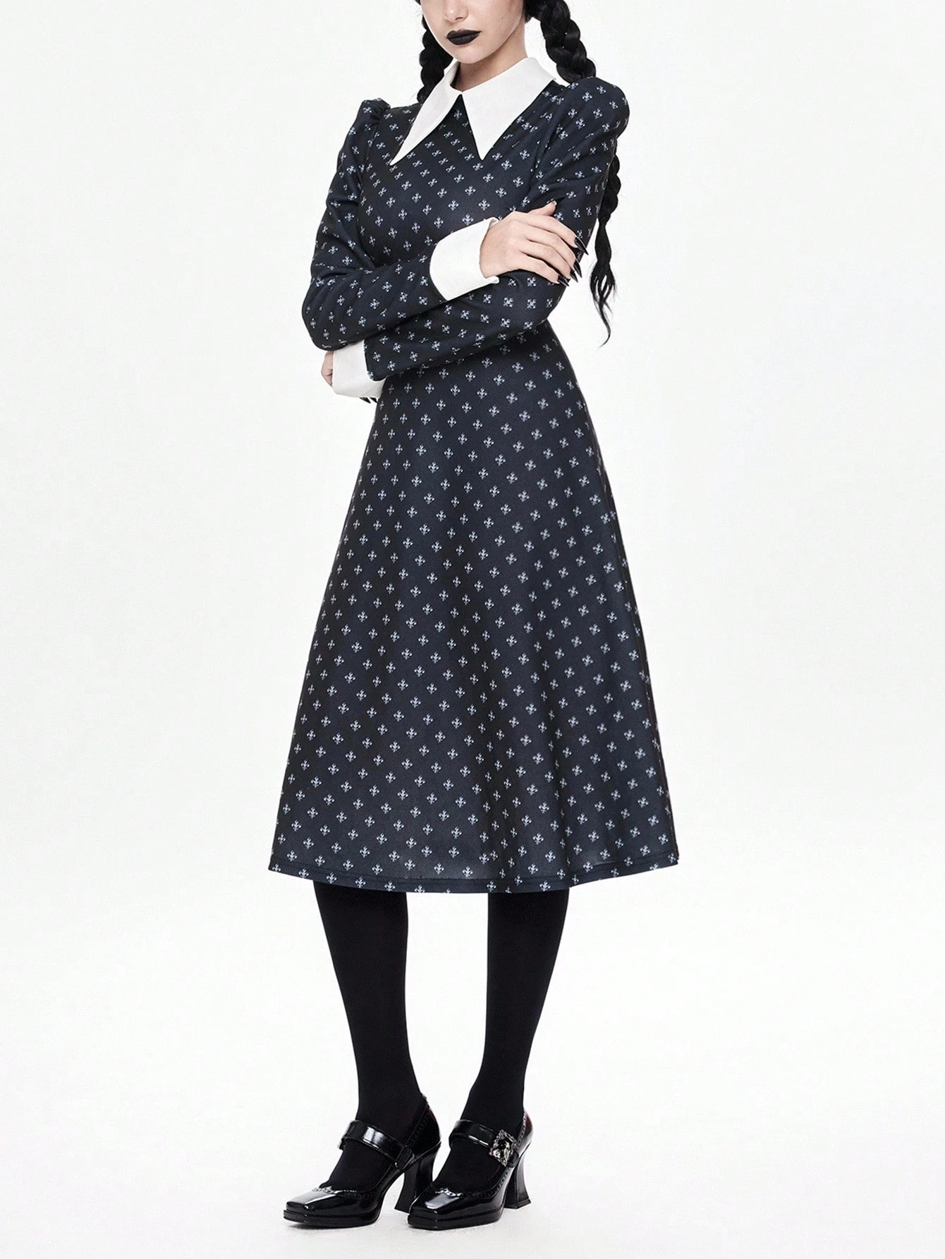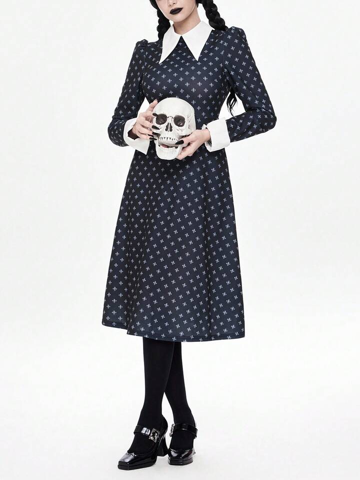 Women's Gothic Style All-Over Print V-Neck Casual Mid-Length Dress