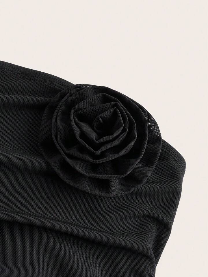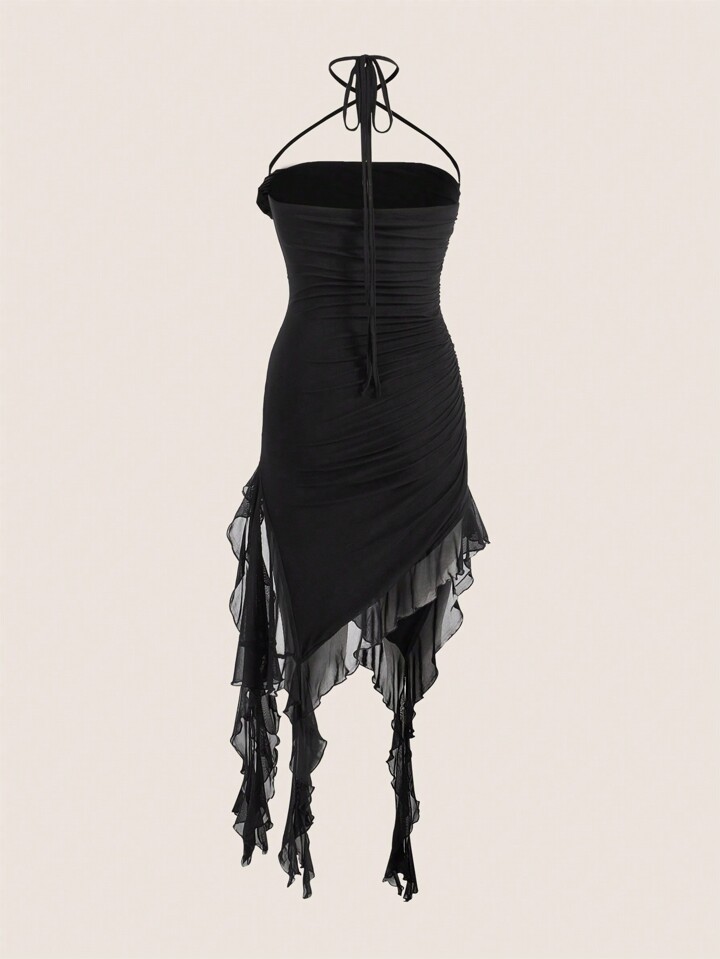 Women's Halter Dress With 3d Flowers And Asymmetrical Hem With Ruffle, School