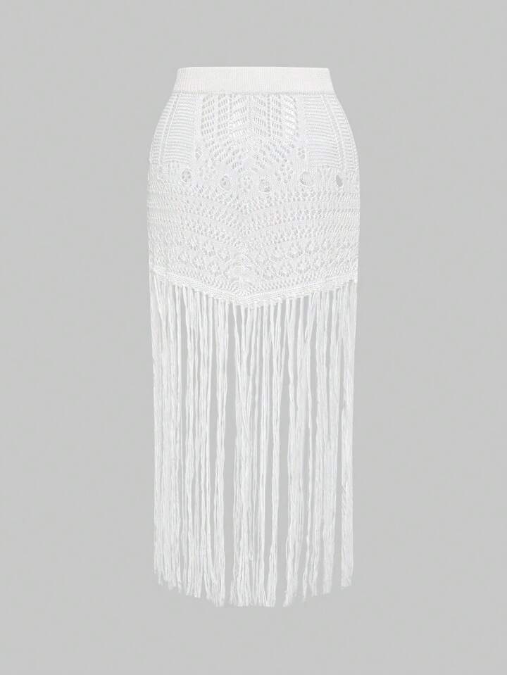 Women's Hippie Vacation Casual Beach Romantic Tassel Crochet Knit Skirt