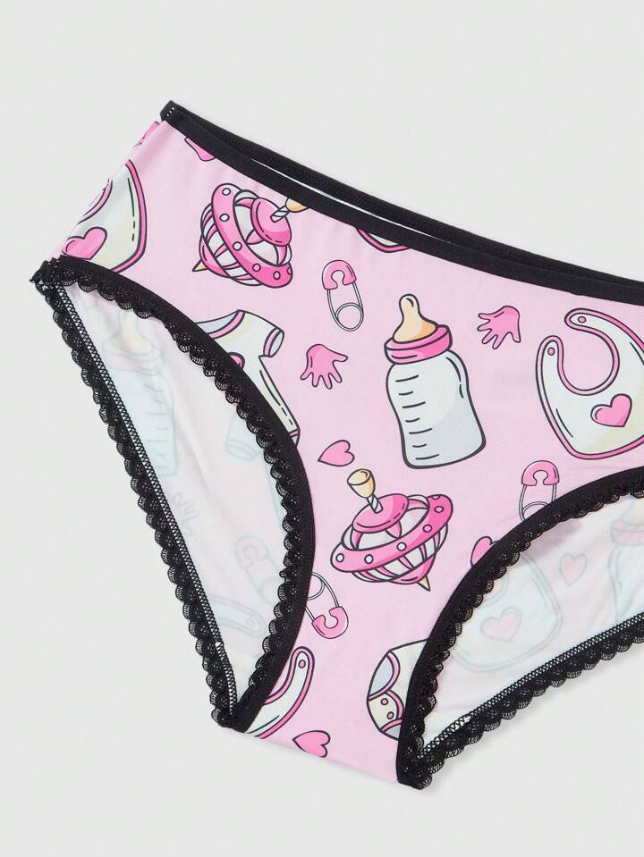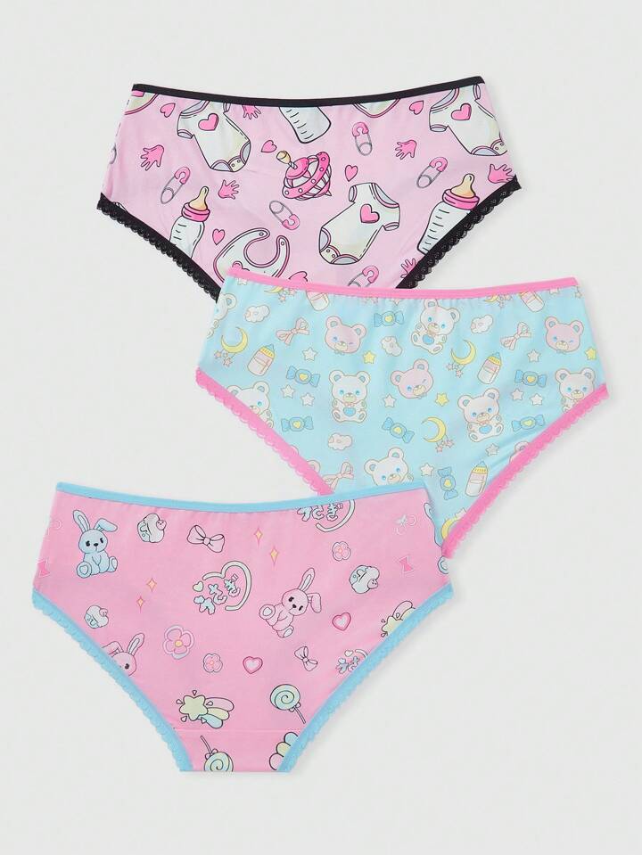 Women's Kawaii Flower Lace Cartoon Printed Triangle Underwear, 3pcs/Pack