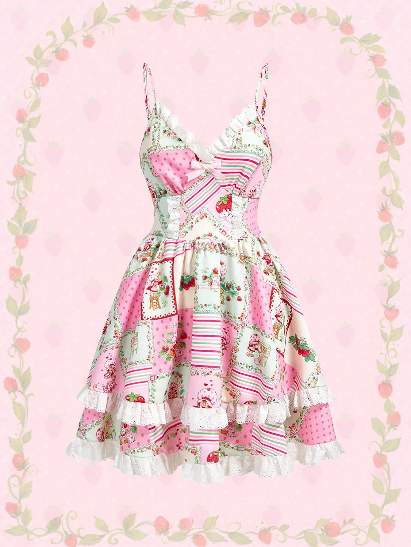 Women's Patchwork Print Ruffle Hem Bow Decor Dress ,Spring/Summer