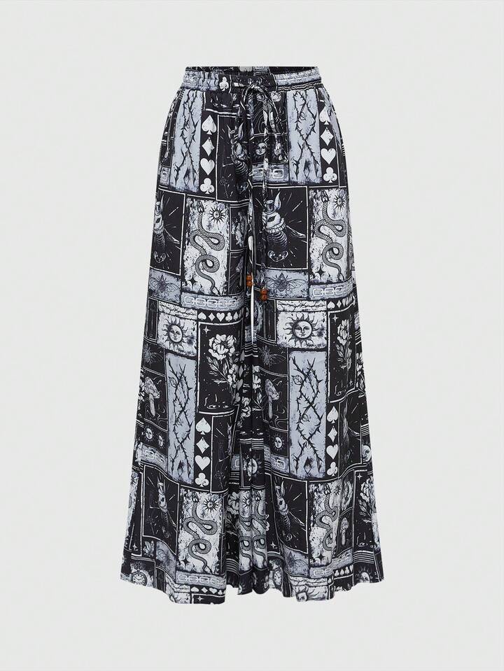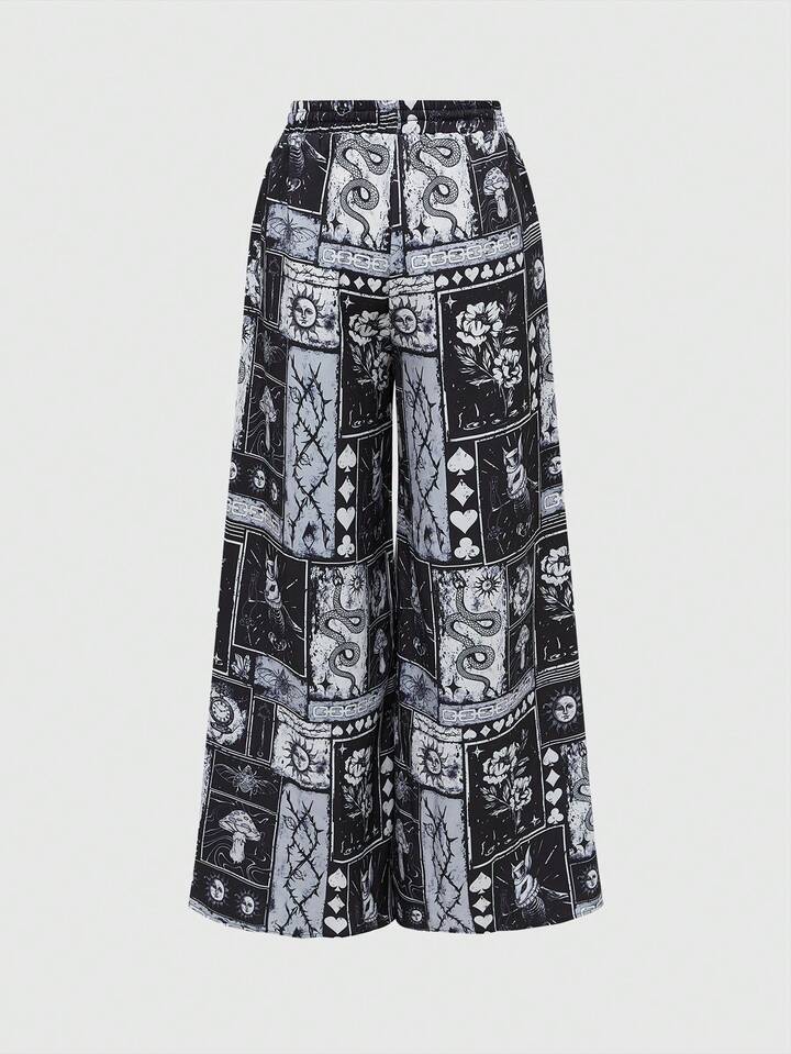 Women's Retro Gothic All-Match Versatile Mushroom, Sun, Moon, Star, Snake Print Wide Leg Pants