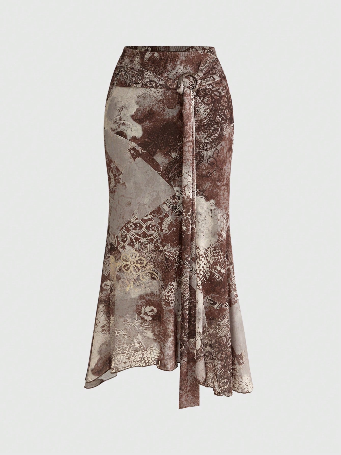 Women's Retro Vacation Boho Hippie Asymmetrical Hem Paisley Print A-Line Skirt