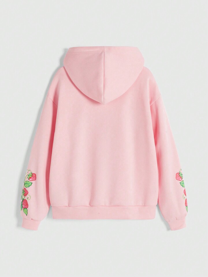 Women's Strawberry Print Casual Hooded Sweatshirt For Autumn