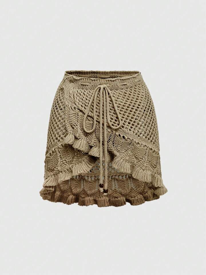 Women's Summer Beach Casual Vacation Hollow-Out Knit Skirt