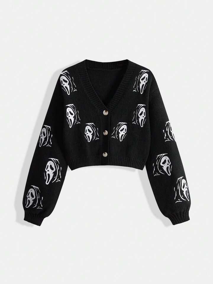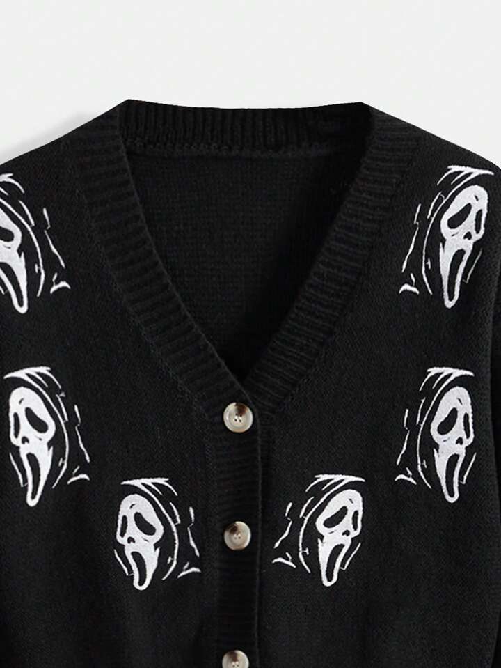 Women's Vintage Goth Skeleton Head Embroidered Cardigan