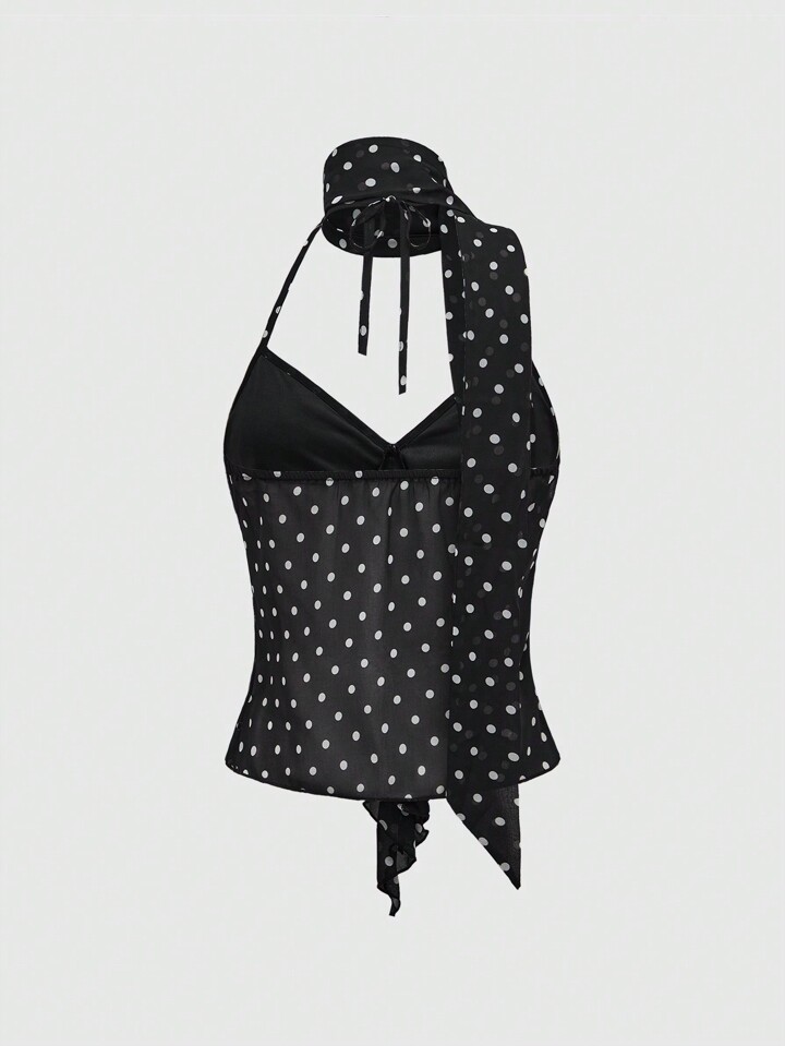 Women's Vintage Polka Dot Halter Neck Tank Top