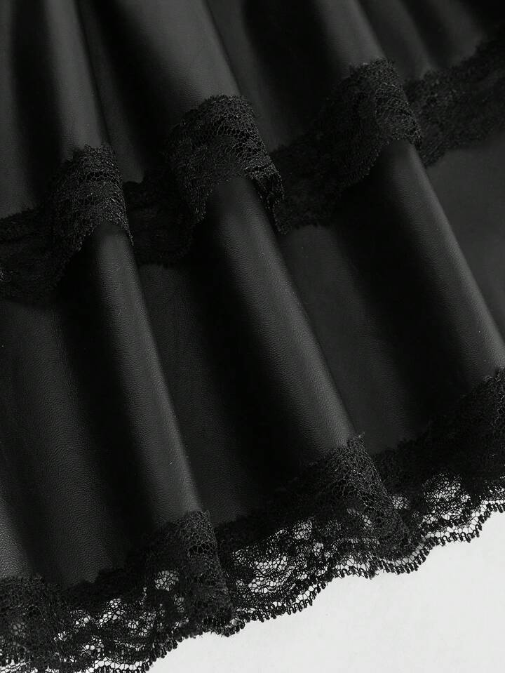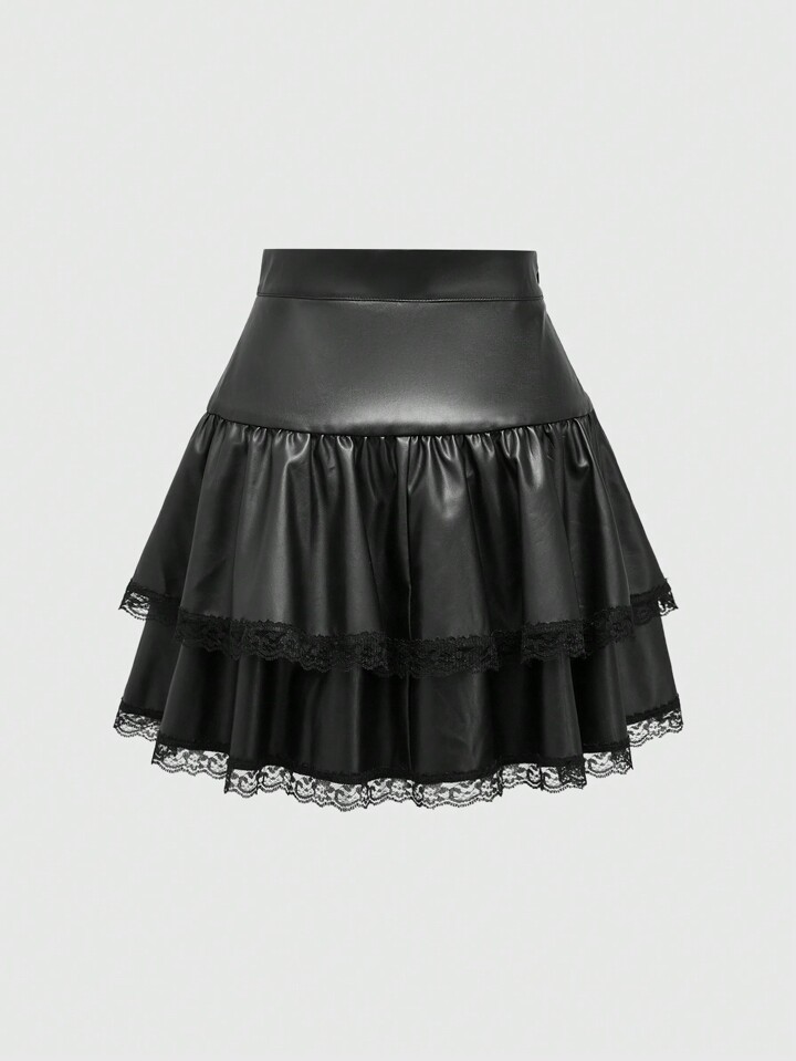 Women's Waist Eyelet Lace-Up Double Layered Ruffle Hem Mini Skirt