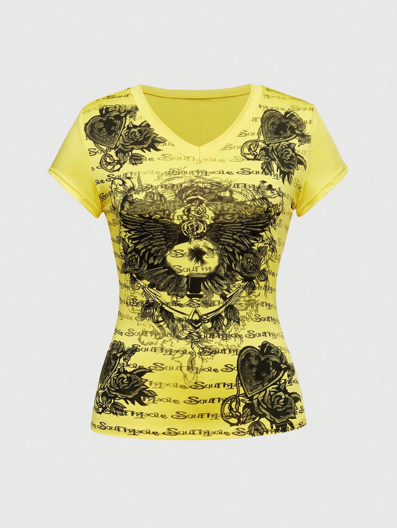 J-Fashion Y2K Grunge Vintage Heart Wing Fitted T-Shirt