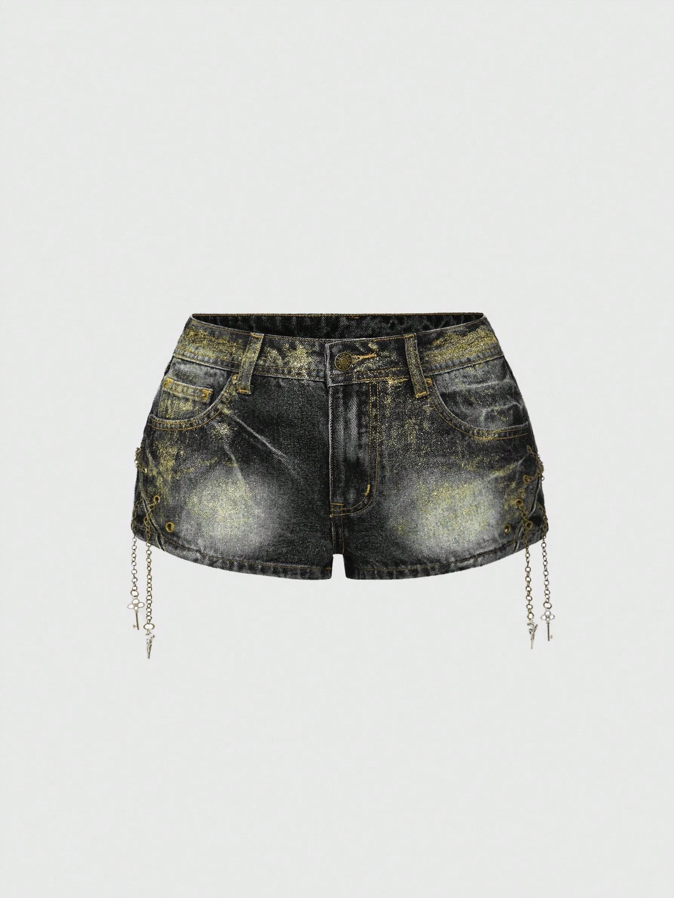 J-Fashion Y2K Gyaru Vintage Crossover Low Waist Distressed Skinny Super Low Waist Women Denim Shorts