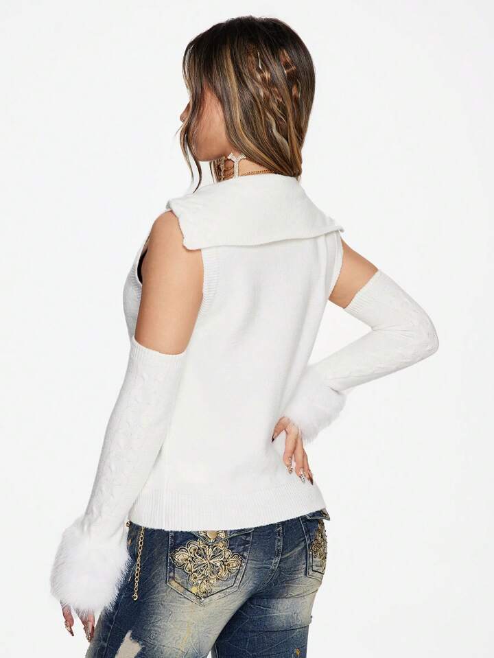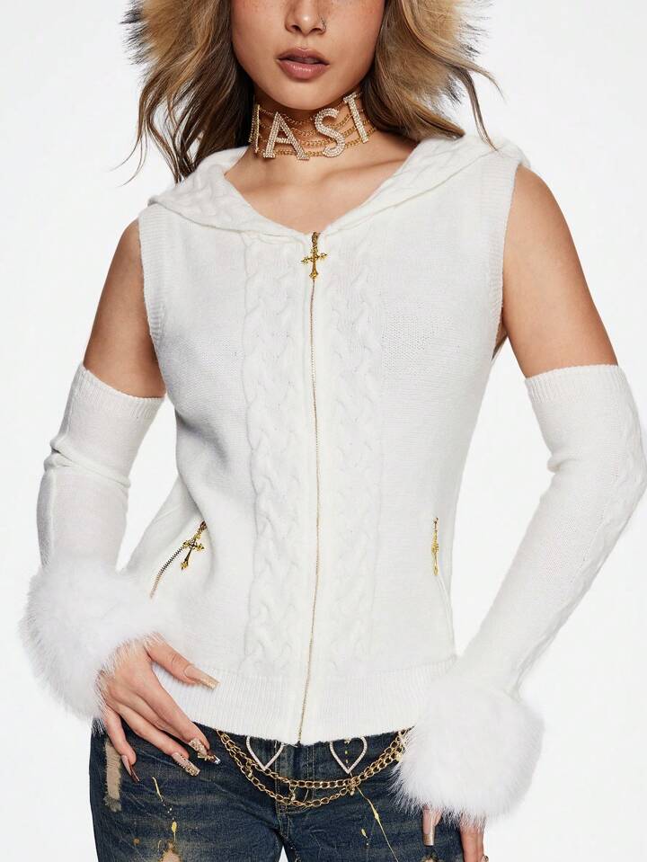 Y2K Gyaru Vintage Fluffy Zip Up Hooded Cardigan For Women, Autumn/Winter