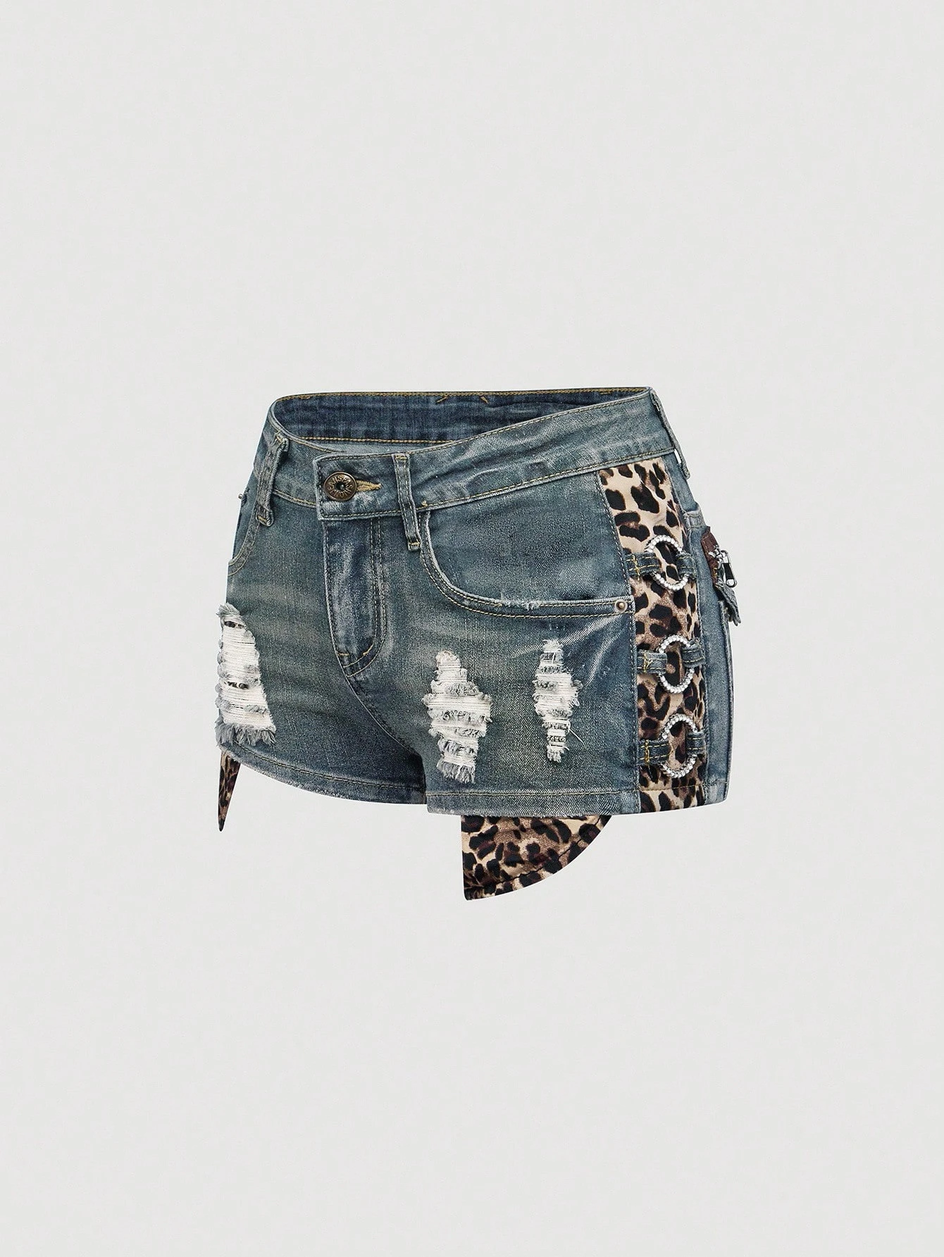 J-Fashion Y2K Gyaru Vintage Super Low Waist Leopard Print Skinny Super Low Rise Women Denim Shorts