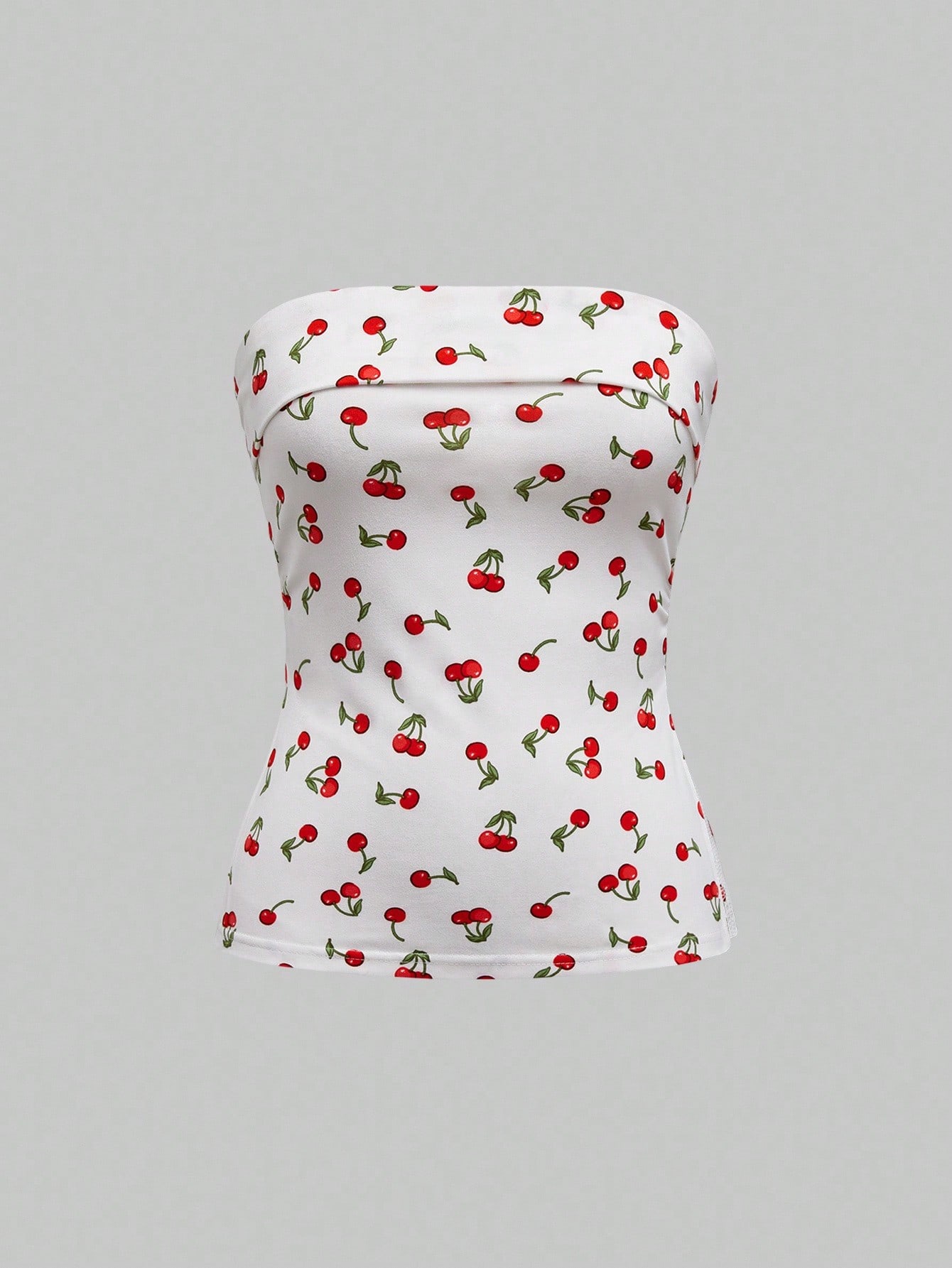 Kawaii Y2K Harajuku Style Cherry Print Cropped Top With Slit Hem