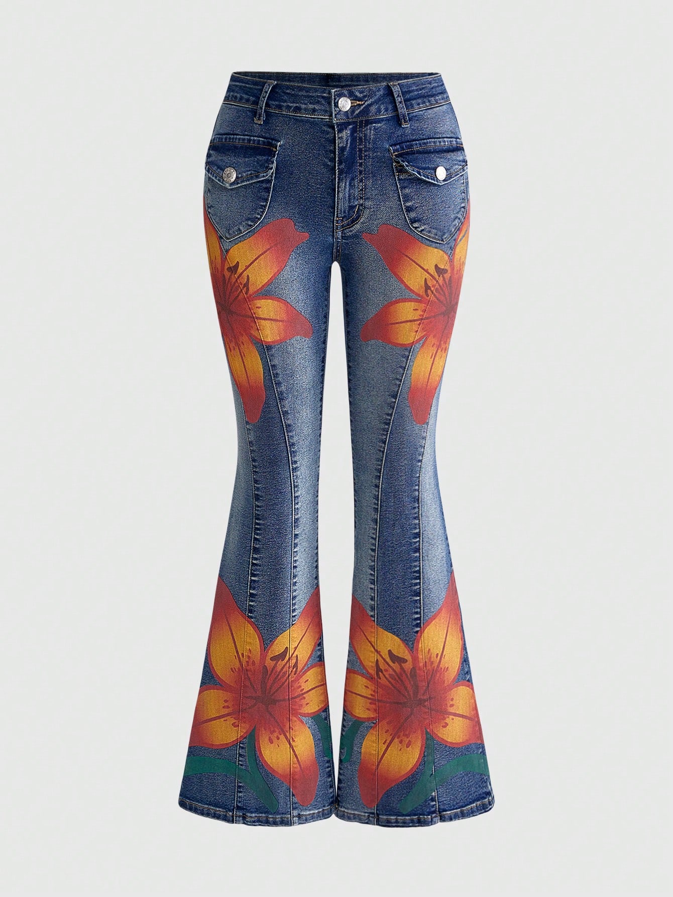 Y2K Island Girl Low-Waist Skinny Printed Women's Jeans