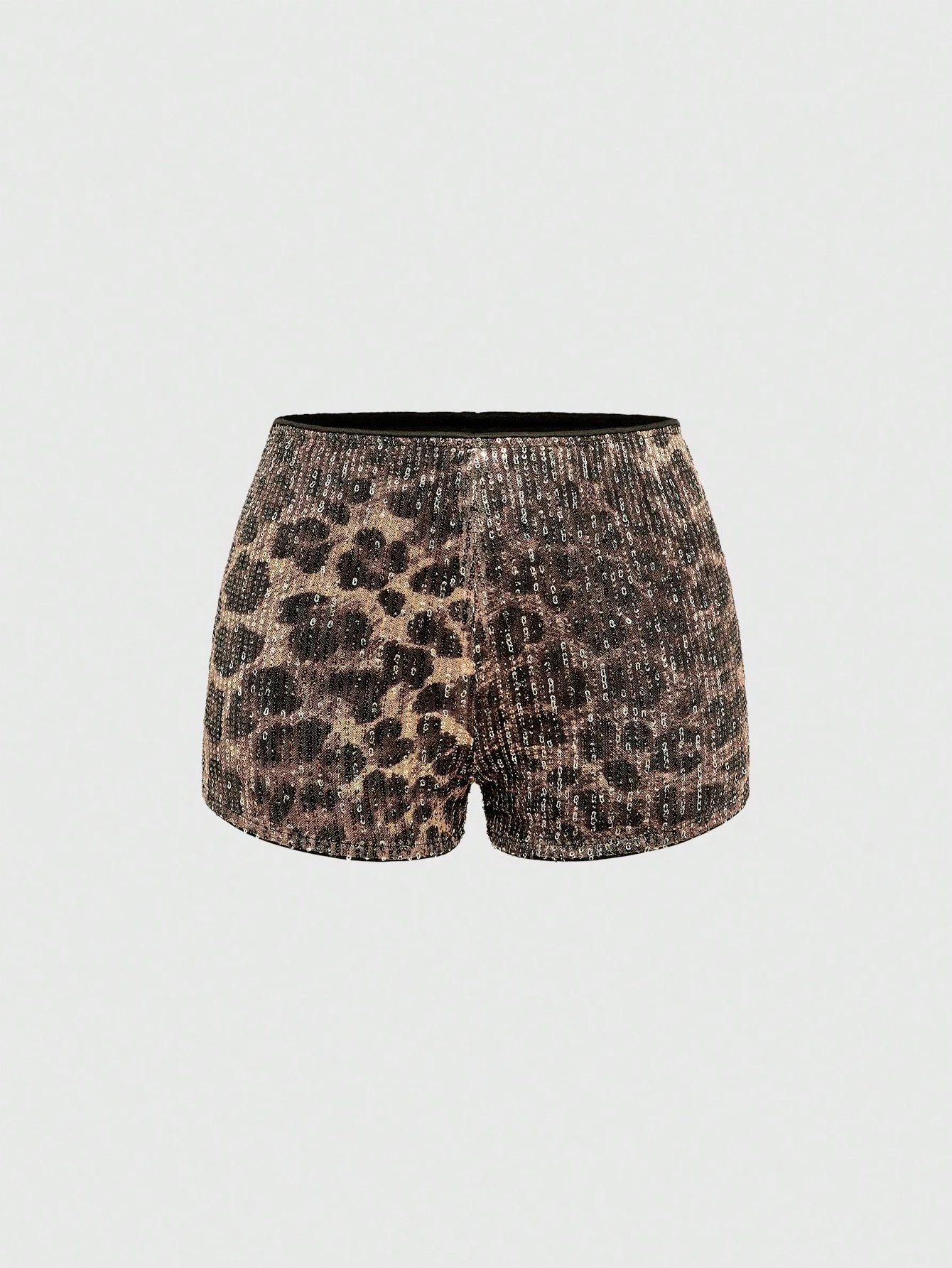 Grunge Punk Y2K Leopard Print Sequin Embellished Super Low Waist Mini Shorts For Women