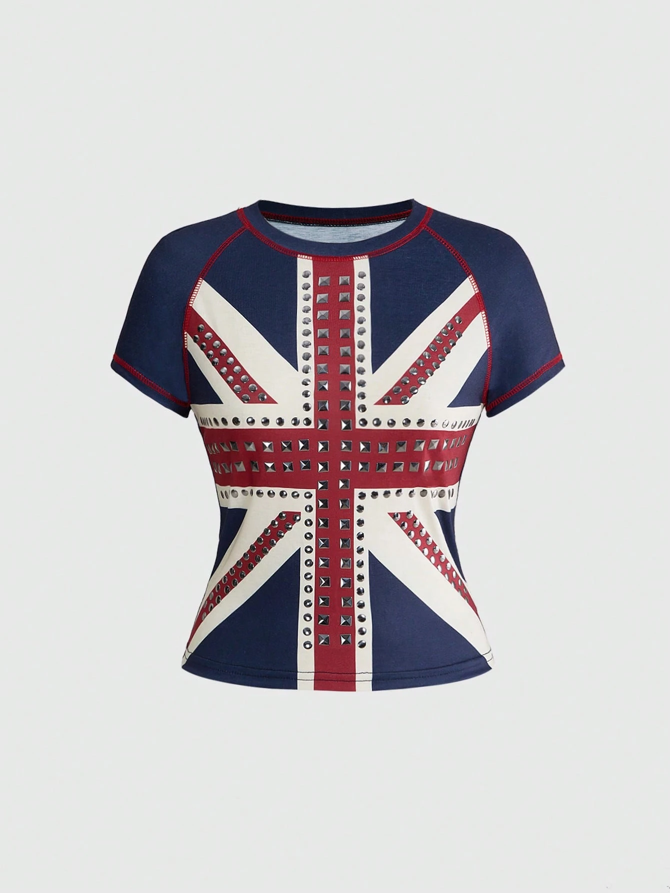 Y2K Retro Streetwear British Flag Print Rhinestone Rivet Women T-Shirt