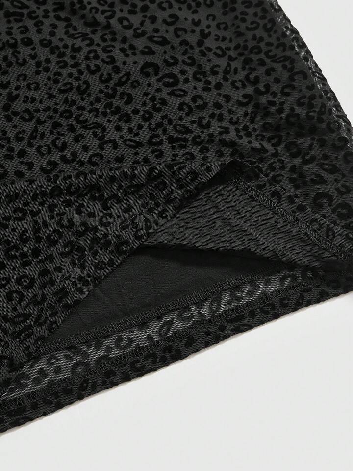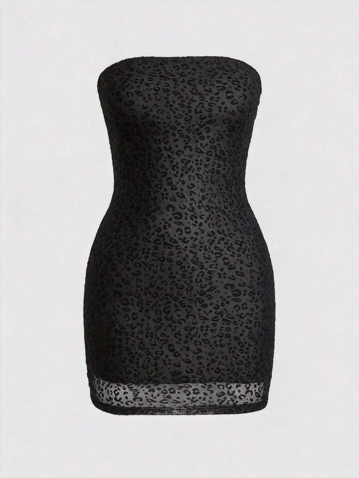Y2K Sexy Flocked Dark Mysterious Bandeau Leopard Print Bodycon Mini Dress For Women, Suitable For Valentine's Day Party