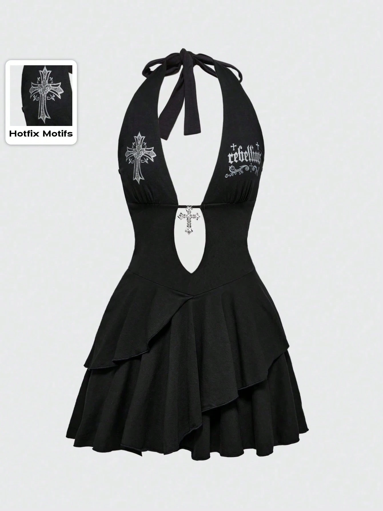Goth Y2K Sexy Gothic Cross Print Rhinestone Decor Camisole Mini Dress
