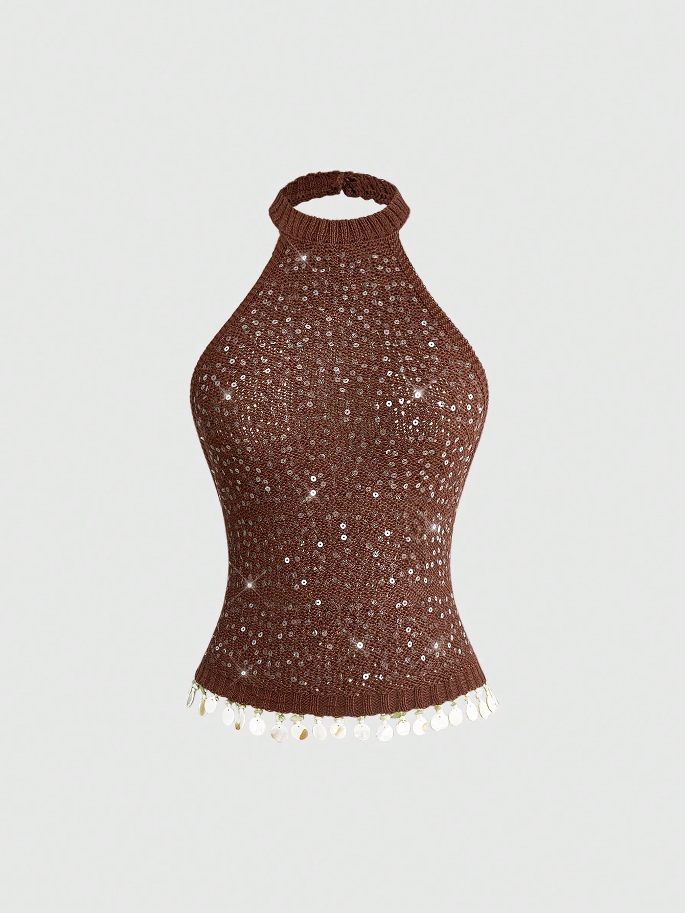 Y2K Spring/Summer Beach Vacation Sexy Sequin Halter Backless Crop Top For Women