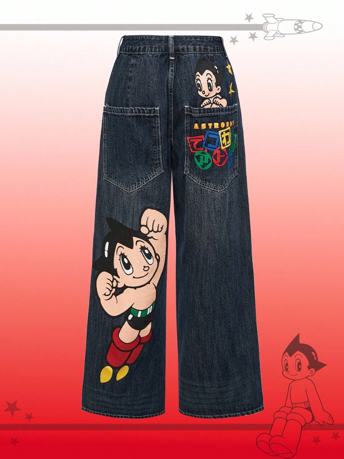 Astro Boy X ROMWE Y2K Streetwear Vintage Cartoon Figure Graphic Distressed Baggy Loose Fit Jeans
