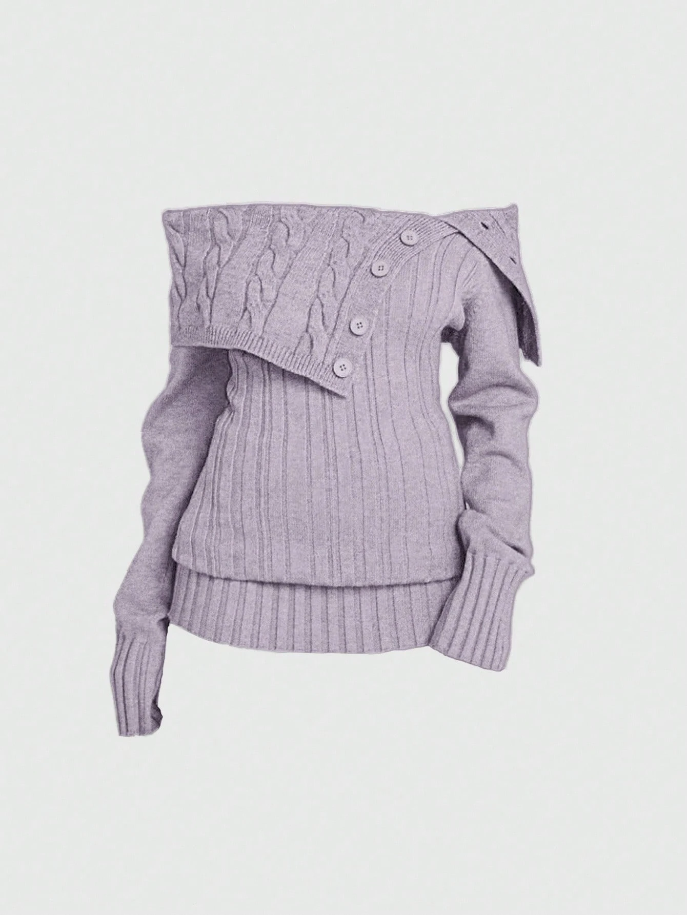 Y2K Style Off Shoulder Ribbed Knit Sweater With Waist Cinching