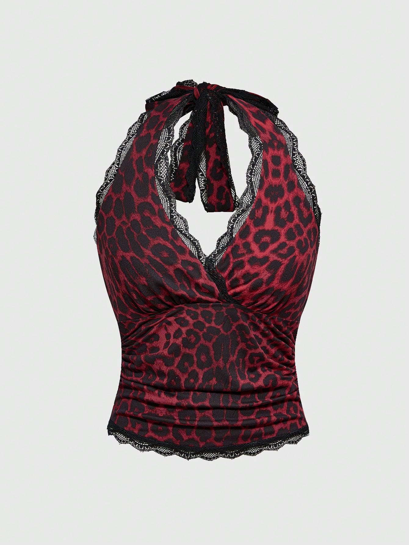 Grunge Punk Y2K Style Women Lace Leopard Print Ruched Halter Tank Top
