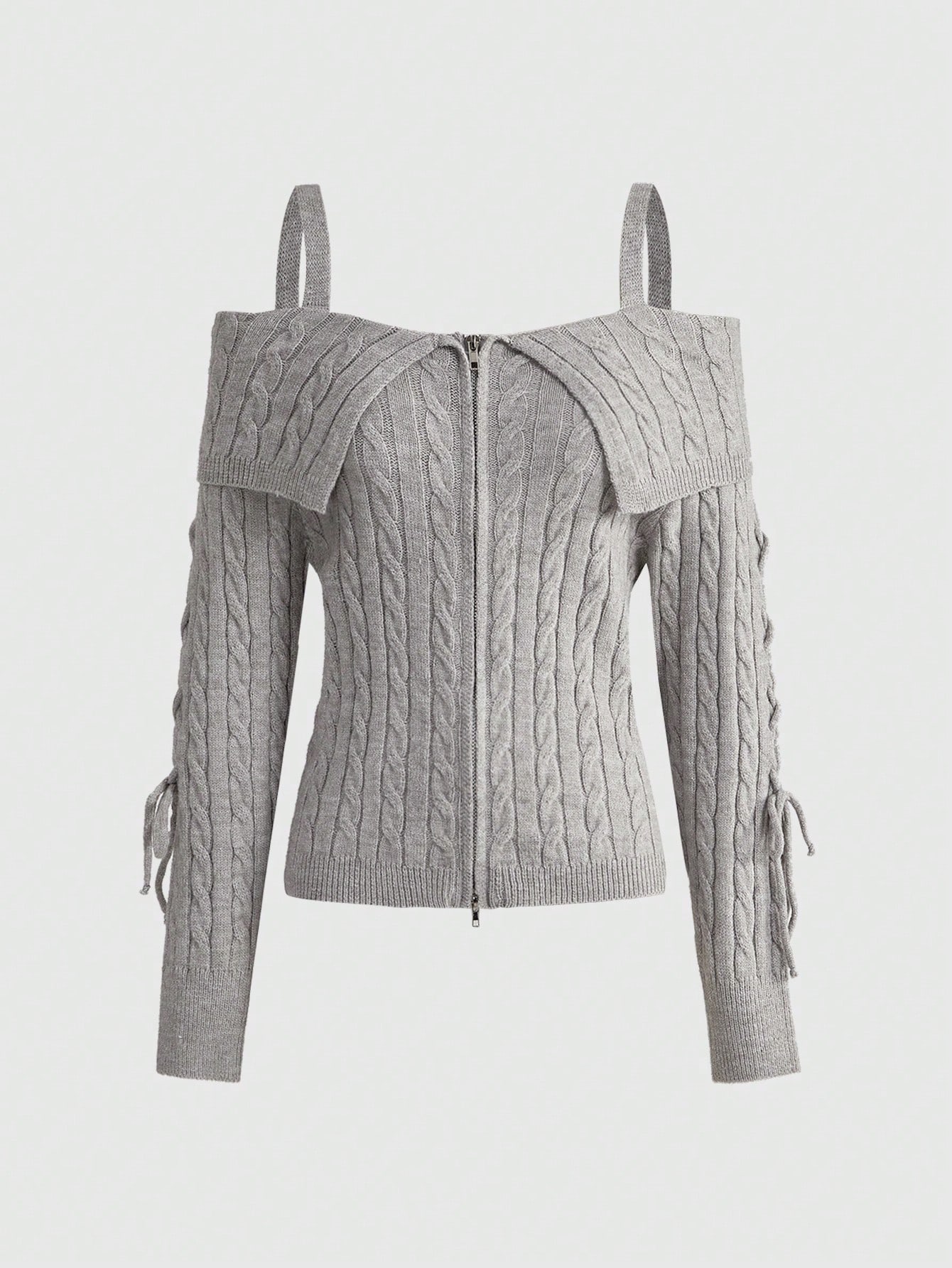 Y2K Style Women's Fitted Ribbed Knit Cardigan With Off-Shoulder Collar And Waist Cinching