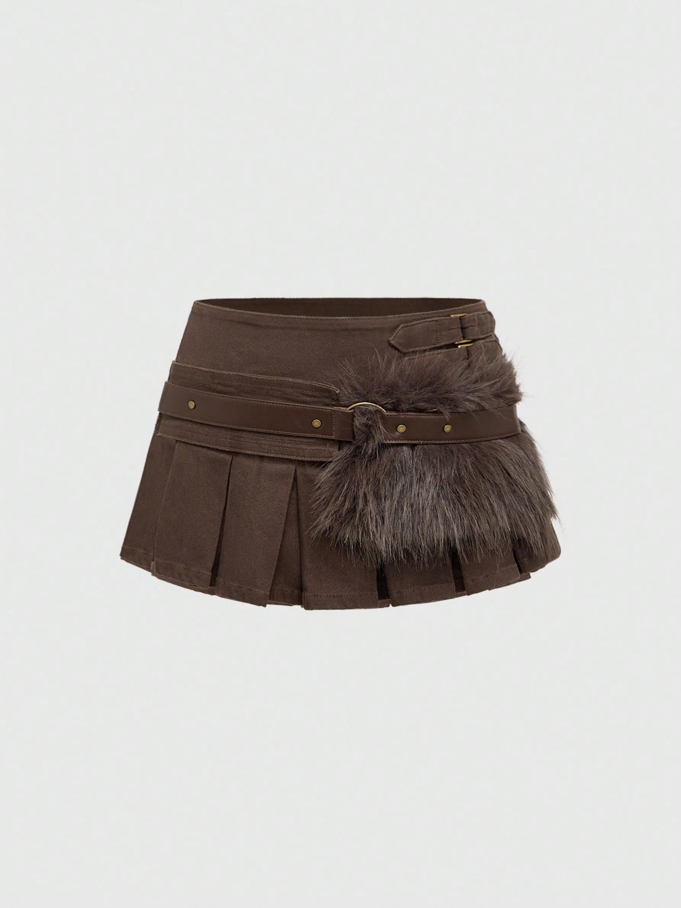 Grunge Punk Y2K Vintage Distressed Sexy Pleated Patchwork Fuzzy Denim Mini Skirt